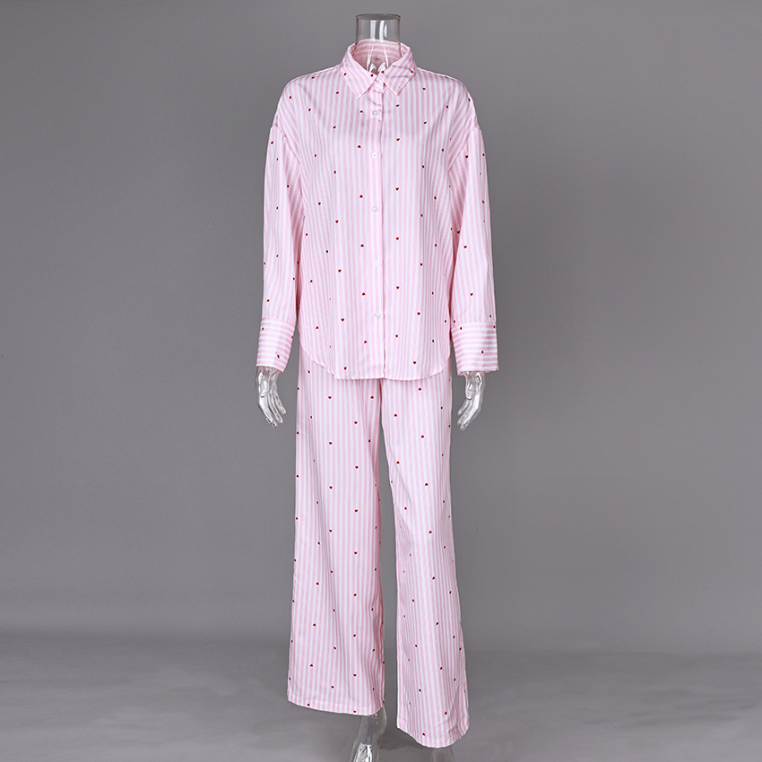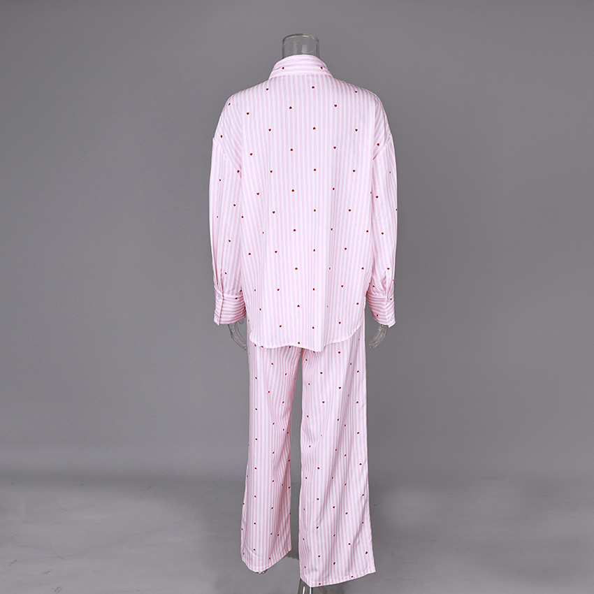 국경을 넘는 유럽과 미국의 캐주얼하고 편안한 가정복 및 겉옷 새로운 패션 긴팔 바지 정장 여성 스트라이프 정장 잠옷