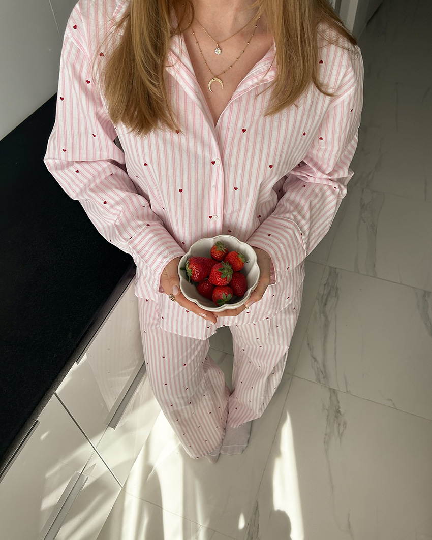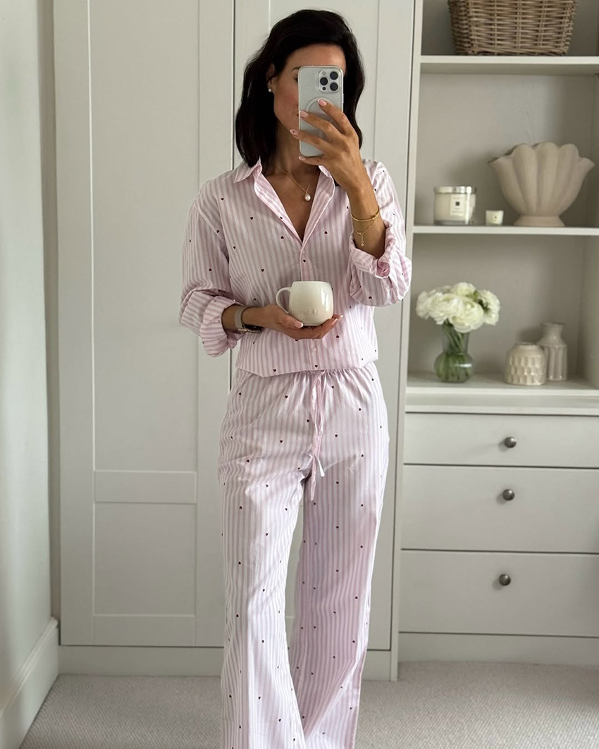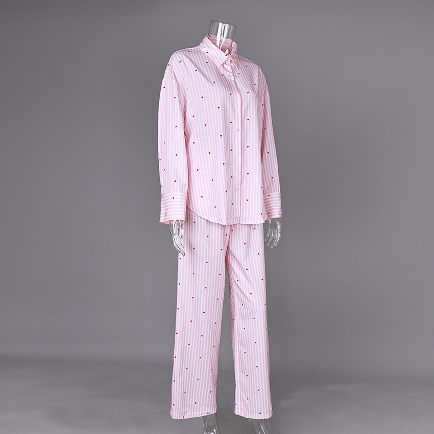 국경을 넘는 유럽과 미국의 캐주얼하고 편안한 가정복 및 겉옷 새로운 패션 긴팔 바지 정장 여성 스트라이프 정장 잠옷스토어 가기
