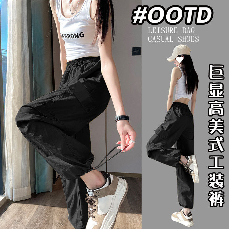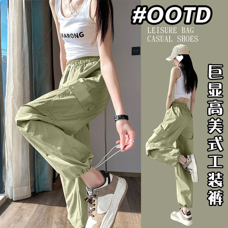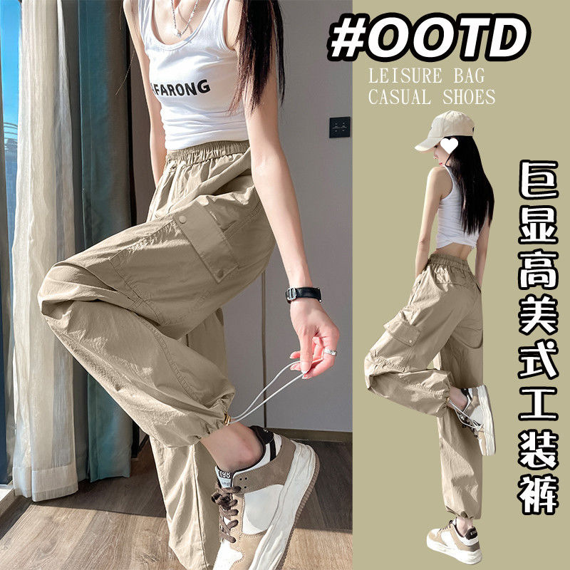 여성용 아메리칸 스타일 작업복 여름 2025 신작 봄 소형 충전 바지 인기 인기 속건 스포츠 바지스토어 가기
