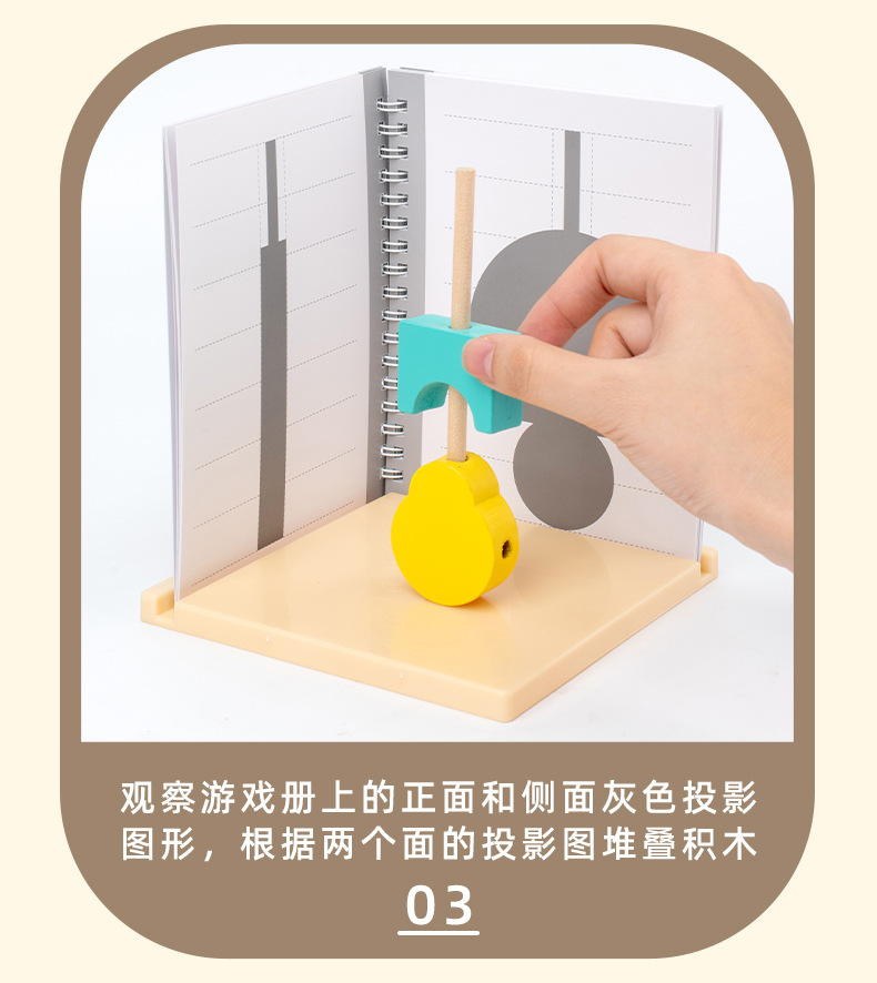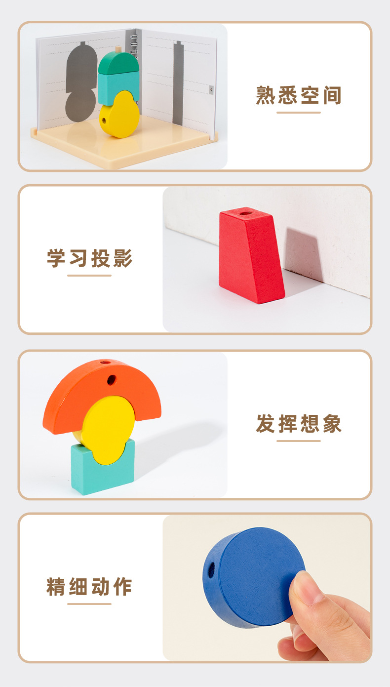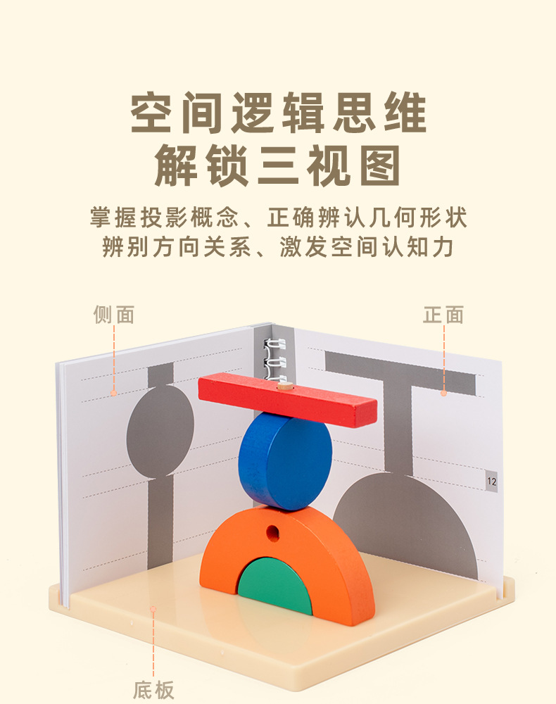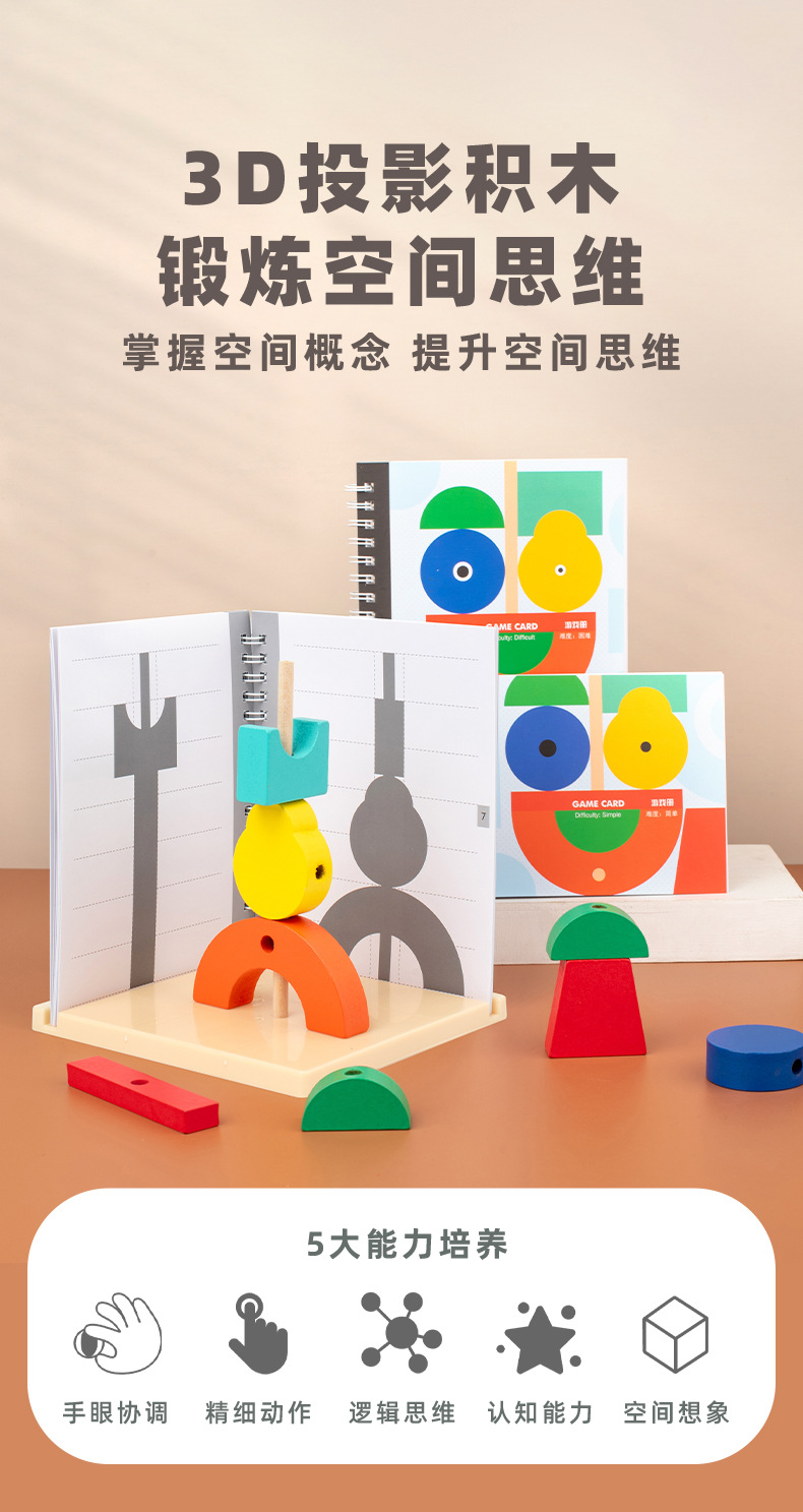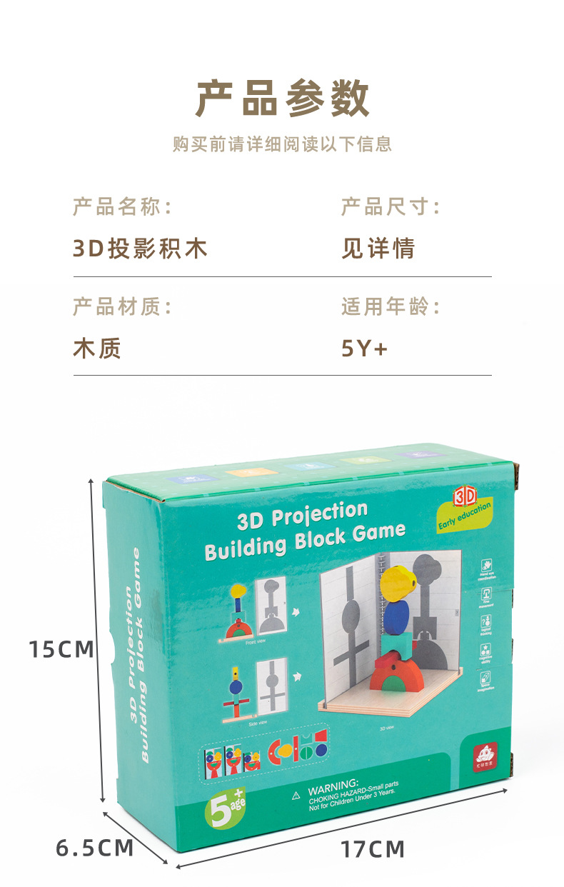 3D 공간 프로젝션 빌딩 블록은 어린이의 공간적 사고 능력을 훈련하고 기하학적 매칭을 직접적으로 구축하여 3가지 뷰를 이해합니다.