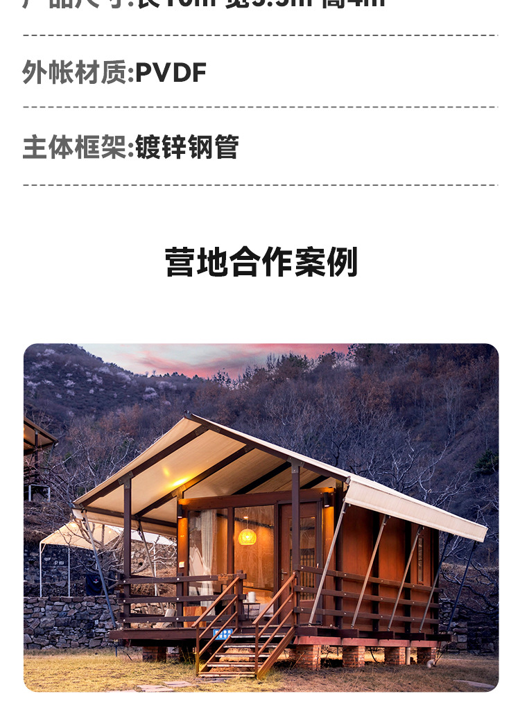 관광지 호텔 텐트, 문화 및 관광 캠핑 텐트, 호텔, 욕실이 있는 1개의 침실 및 1개의 욕실, PVDF B&B 텐트 공장스토어 가기