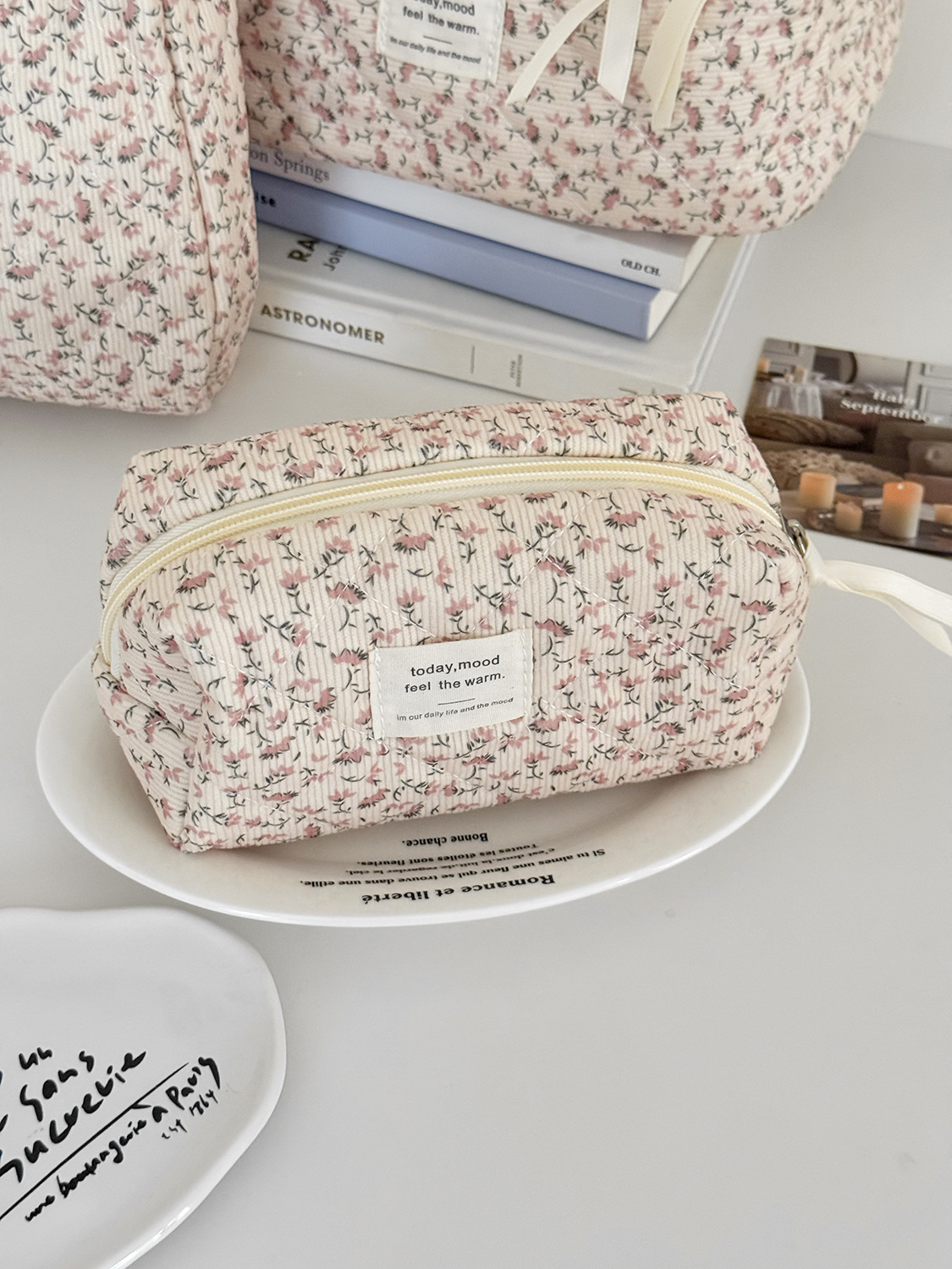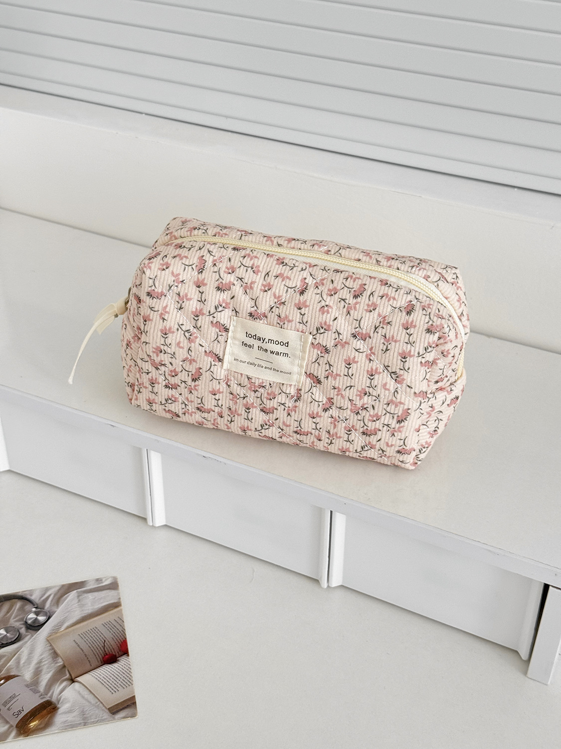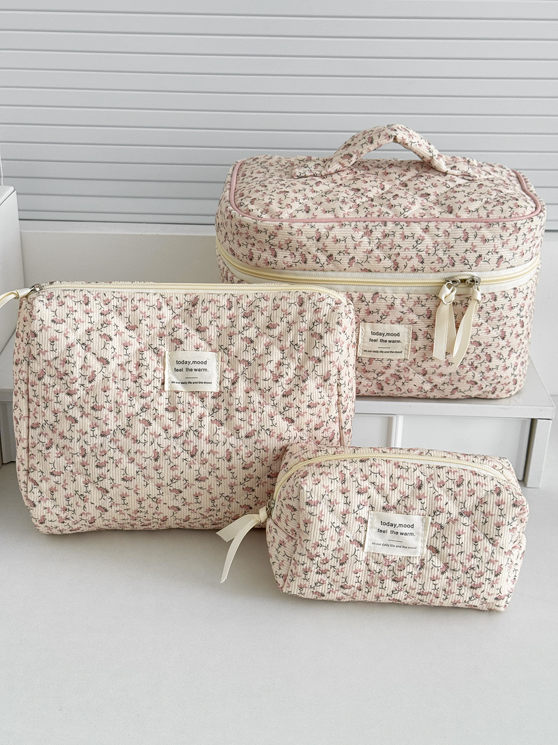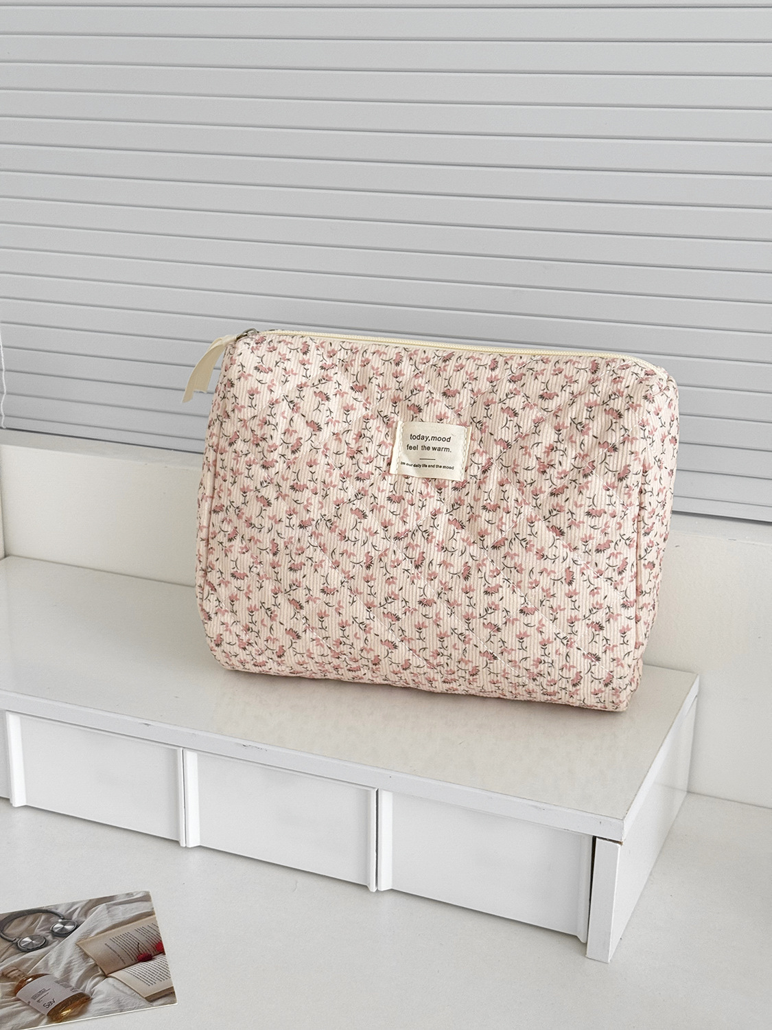 대용량 퀼트 꽃무늬 화장품 가방 휴대용 코듀로이 보관 가방 세면도구 가방 크로스보더