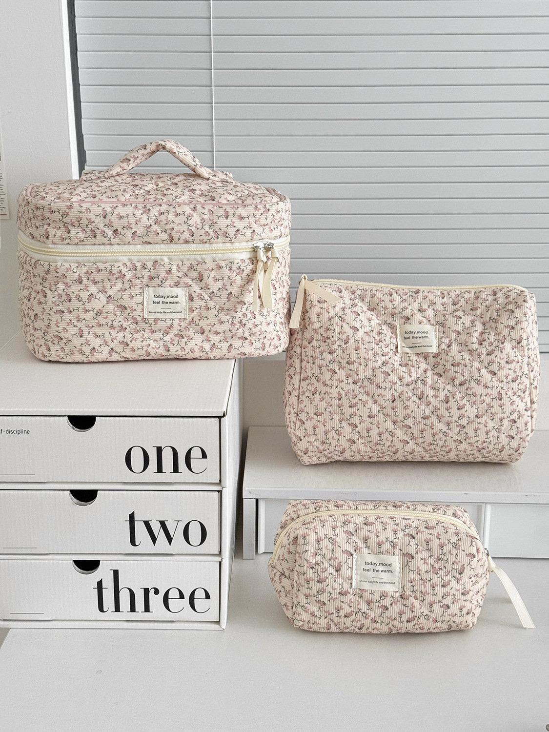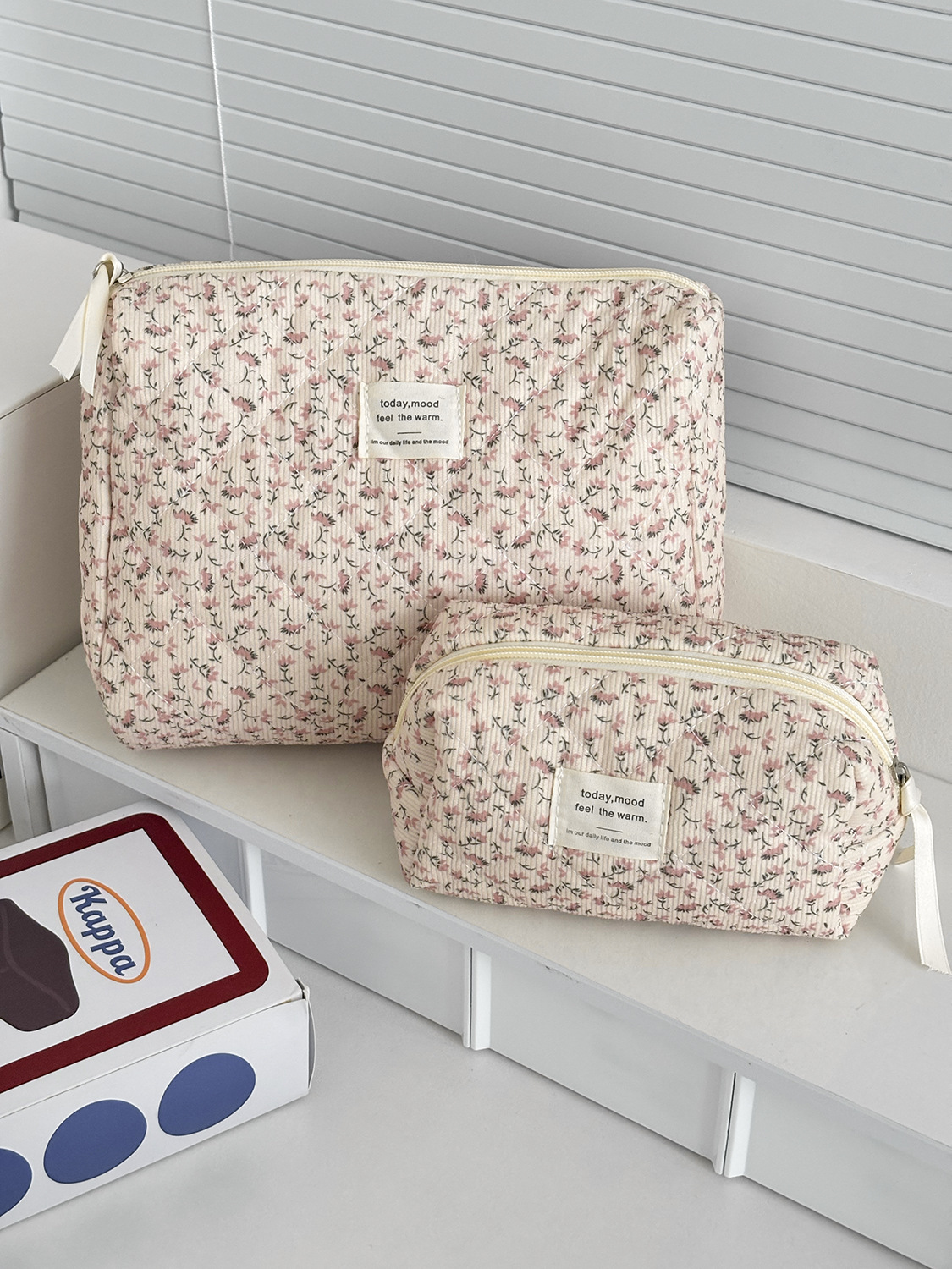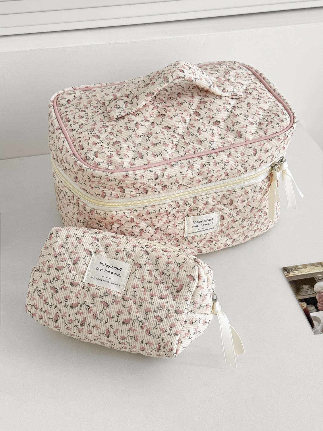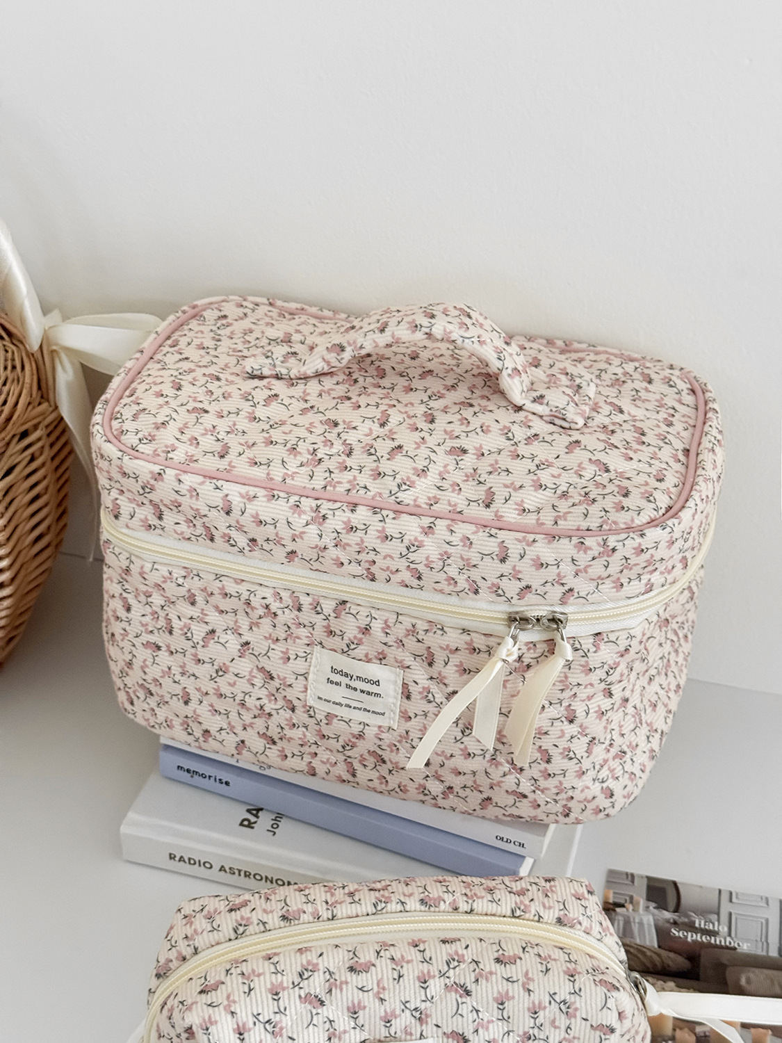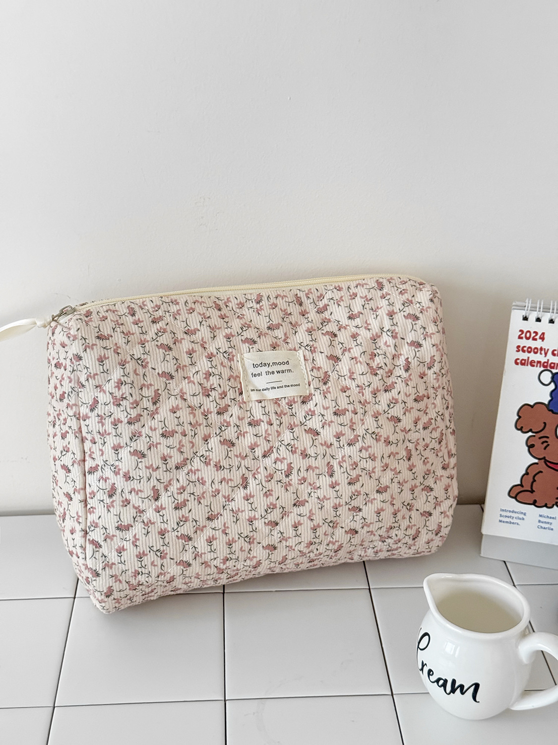 대용량 퀼트 꽃무늬 화장품 가방 휴대용 코듀로이 보관 가방 세면도구 가방 크로스보더