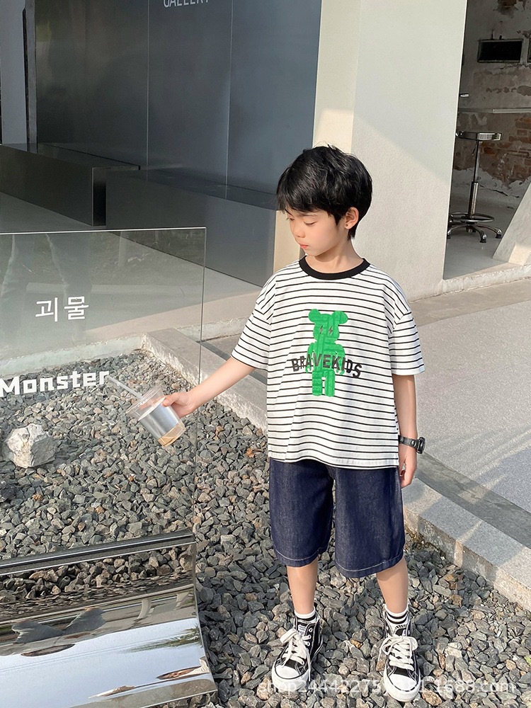 아동복, 남아 데님반바지, 남아 5부바지, 아동바지, 여름얇은 중대형 아동 루즈한 중간바지, 한국판스토어 가기