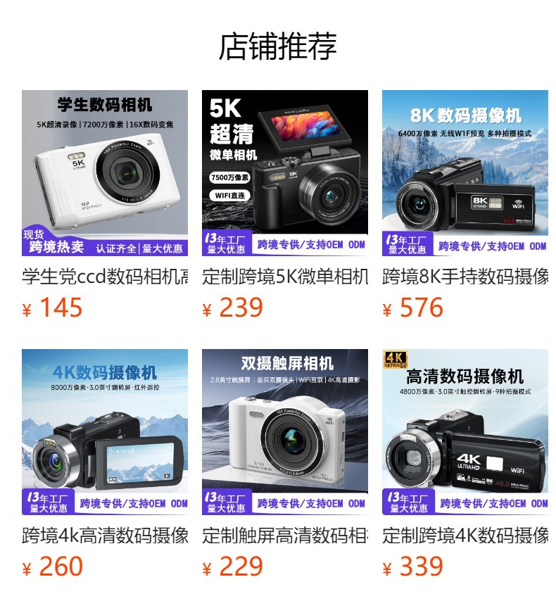 맞춤형 국경 간 8K 디지털 카메라 HD 터치 스크린 야외 라이브 사진 카메라 휴대용 DV 카메라스토어 가기