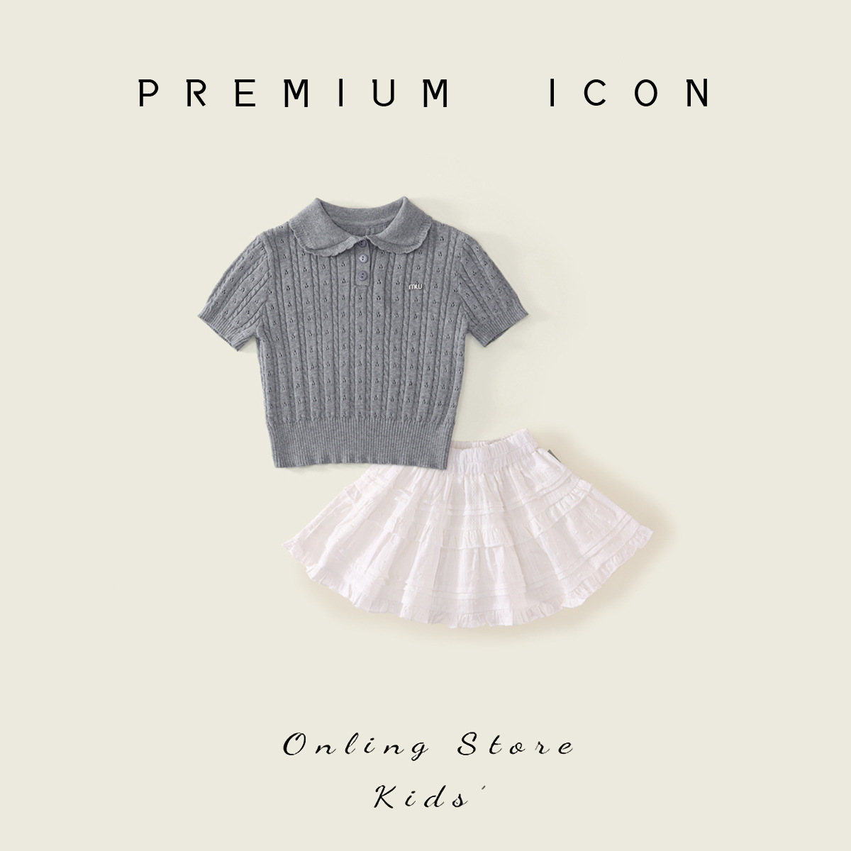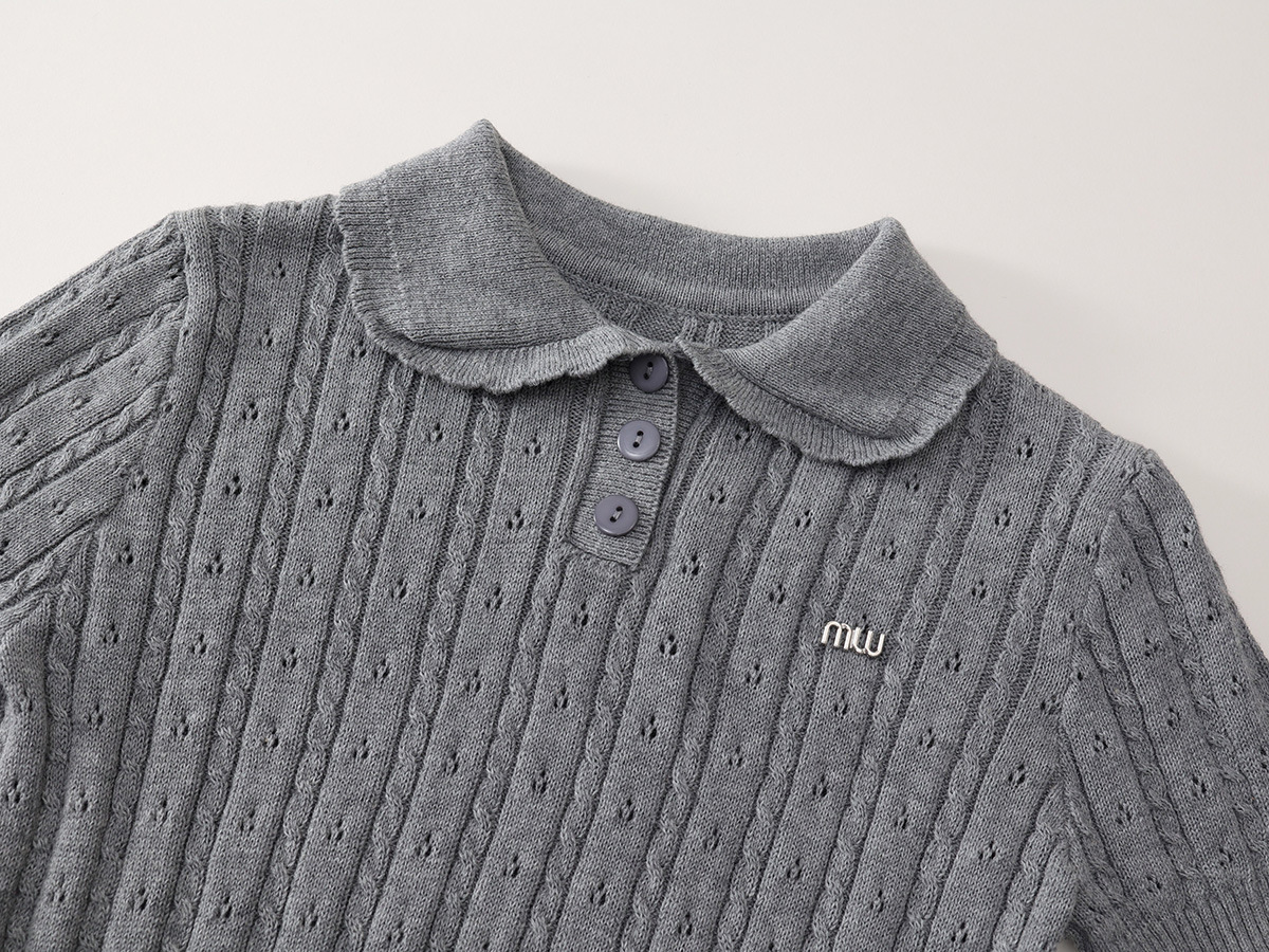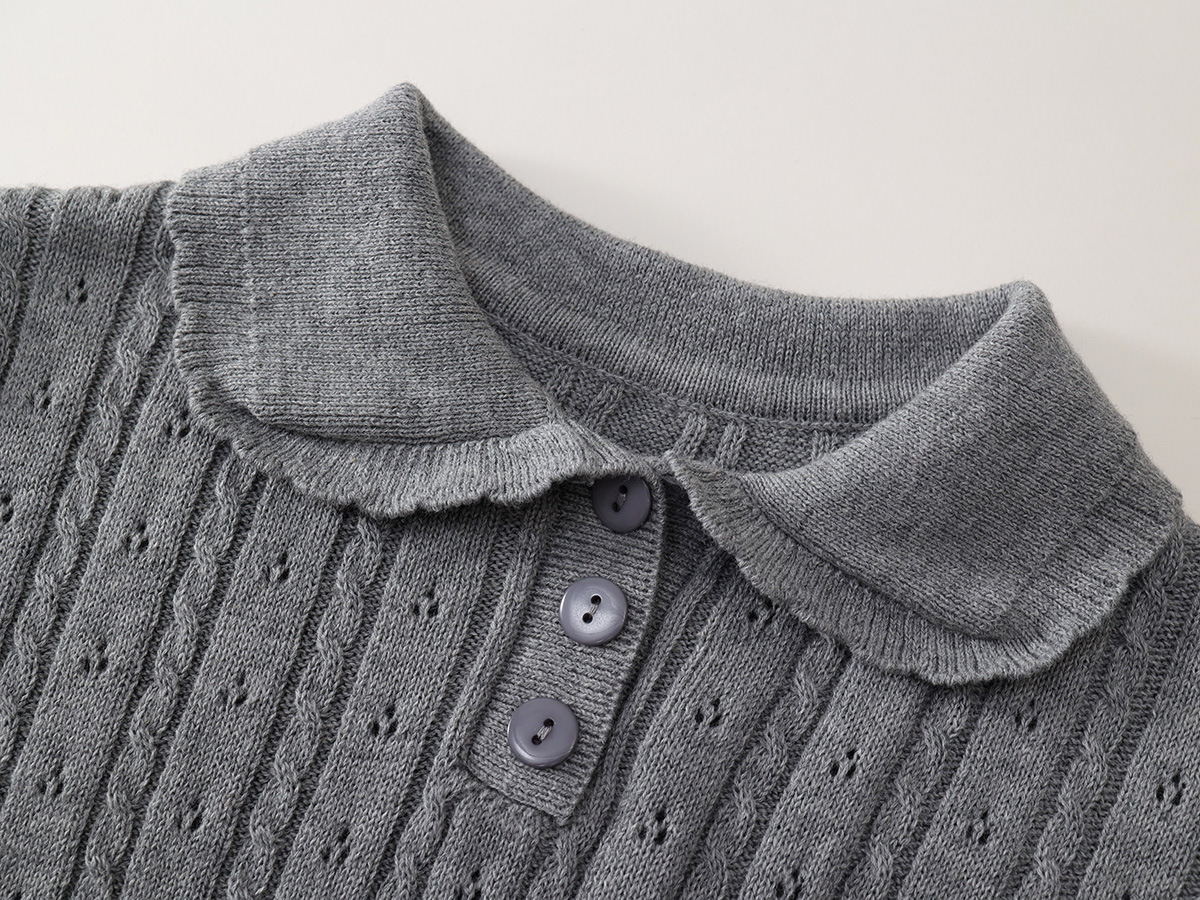 여자 회색 니트 반팔 폴로 탑 2025 여름 신작 어린이 한국 자카드 스커트 투피스 세트