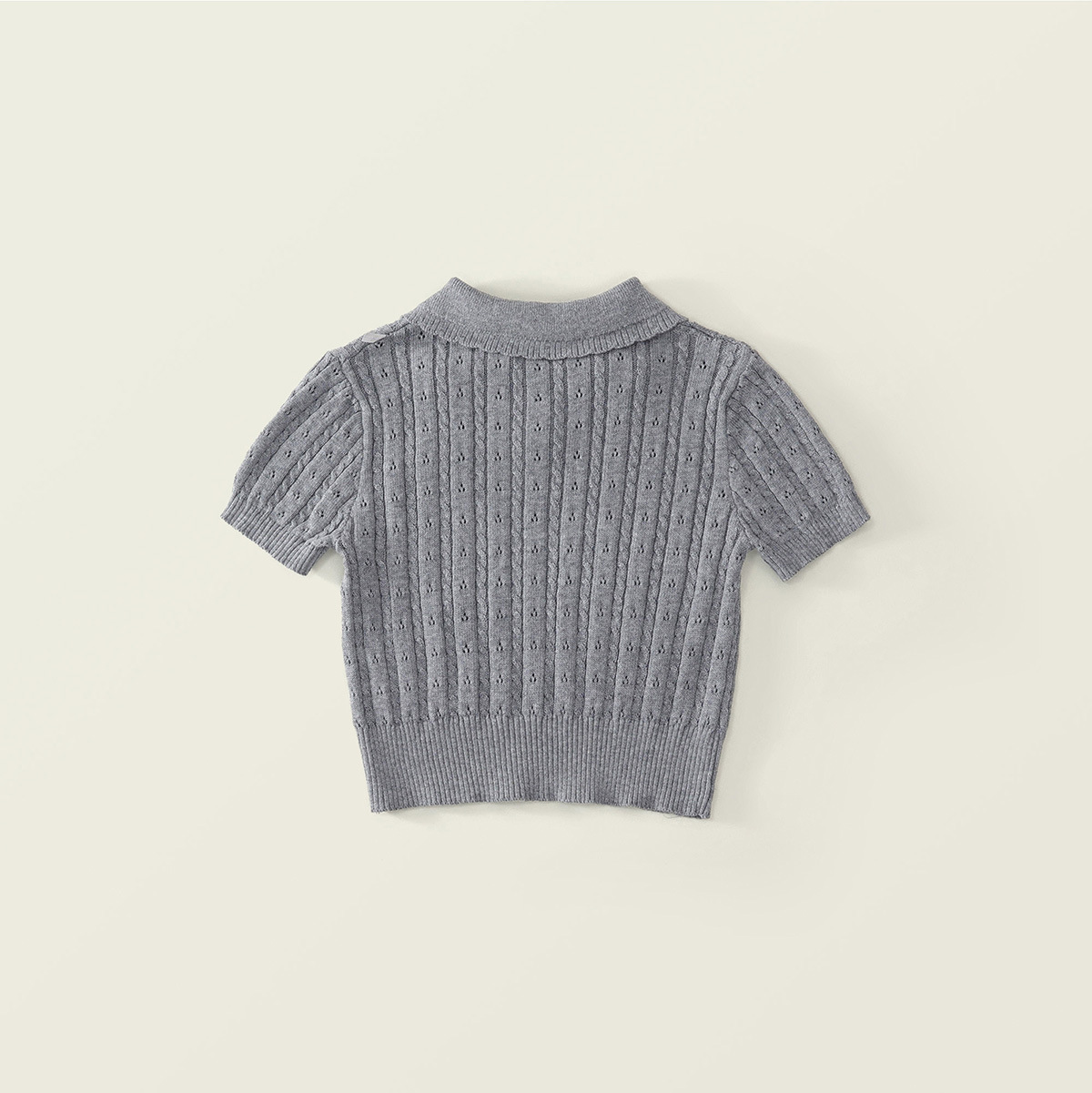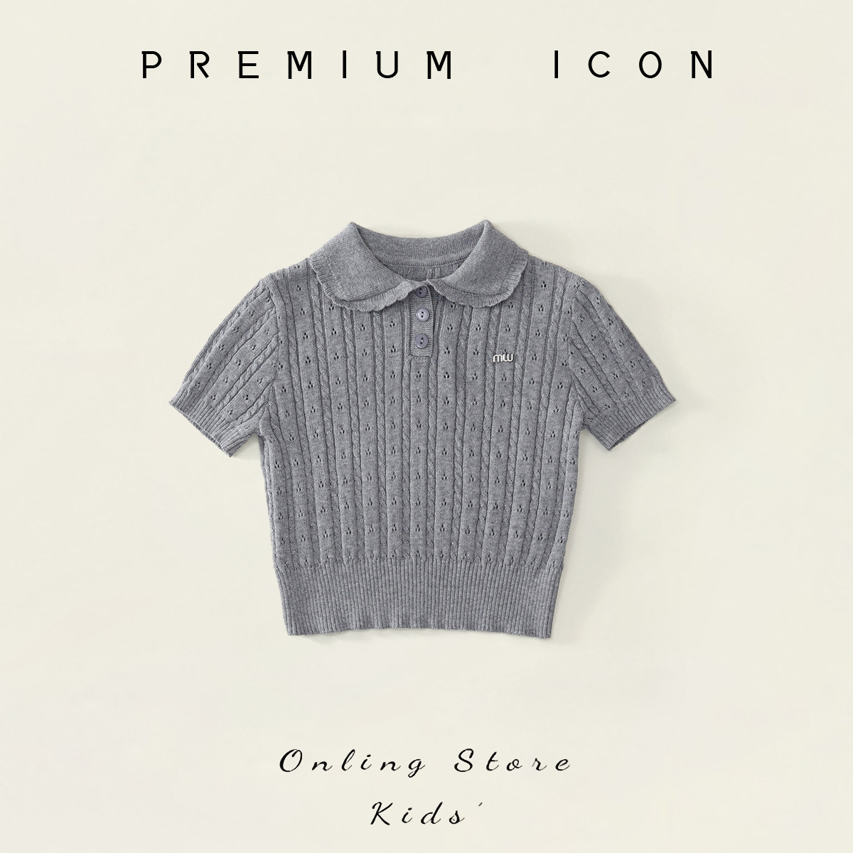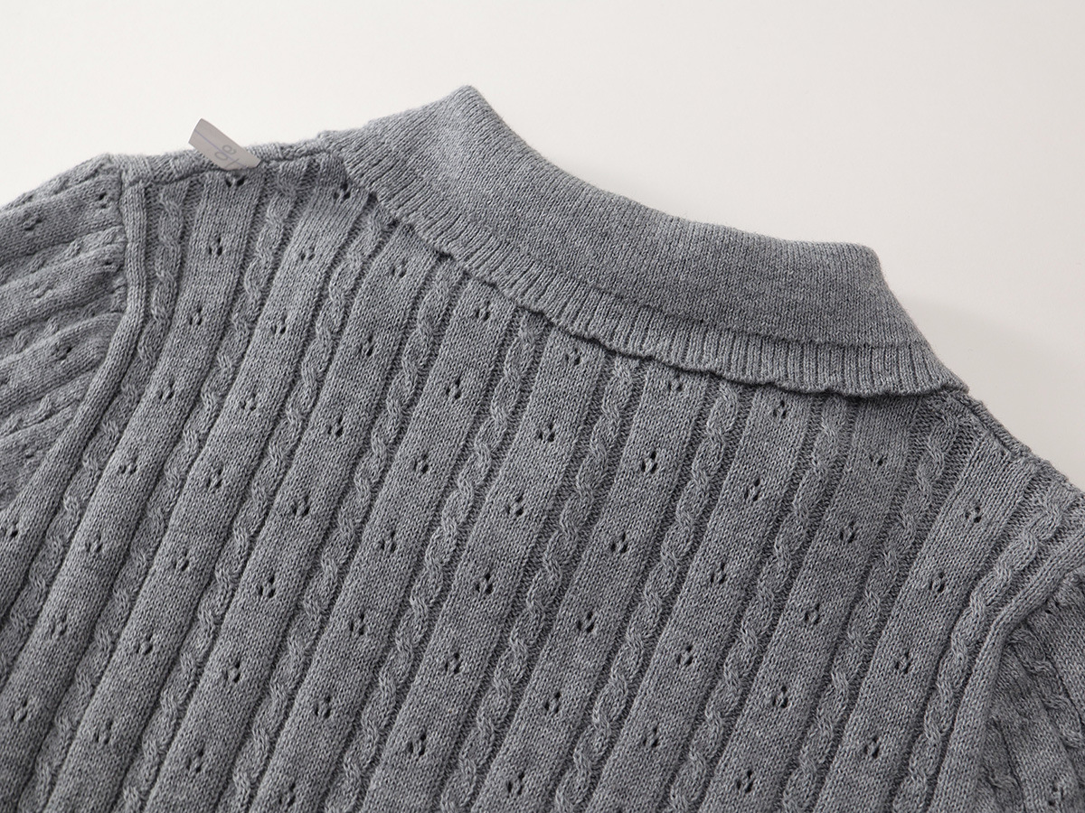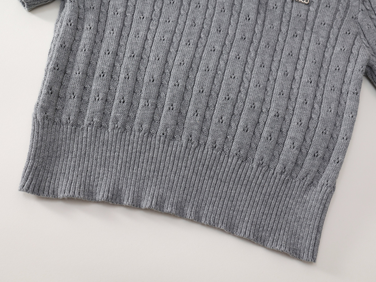 여자 회색 니트 반팔 폴로 탑 2025 여름 신작 어린이 한국 자카드 스커트 투피스 세트스토어 가기