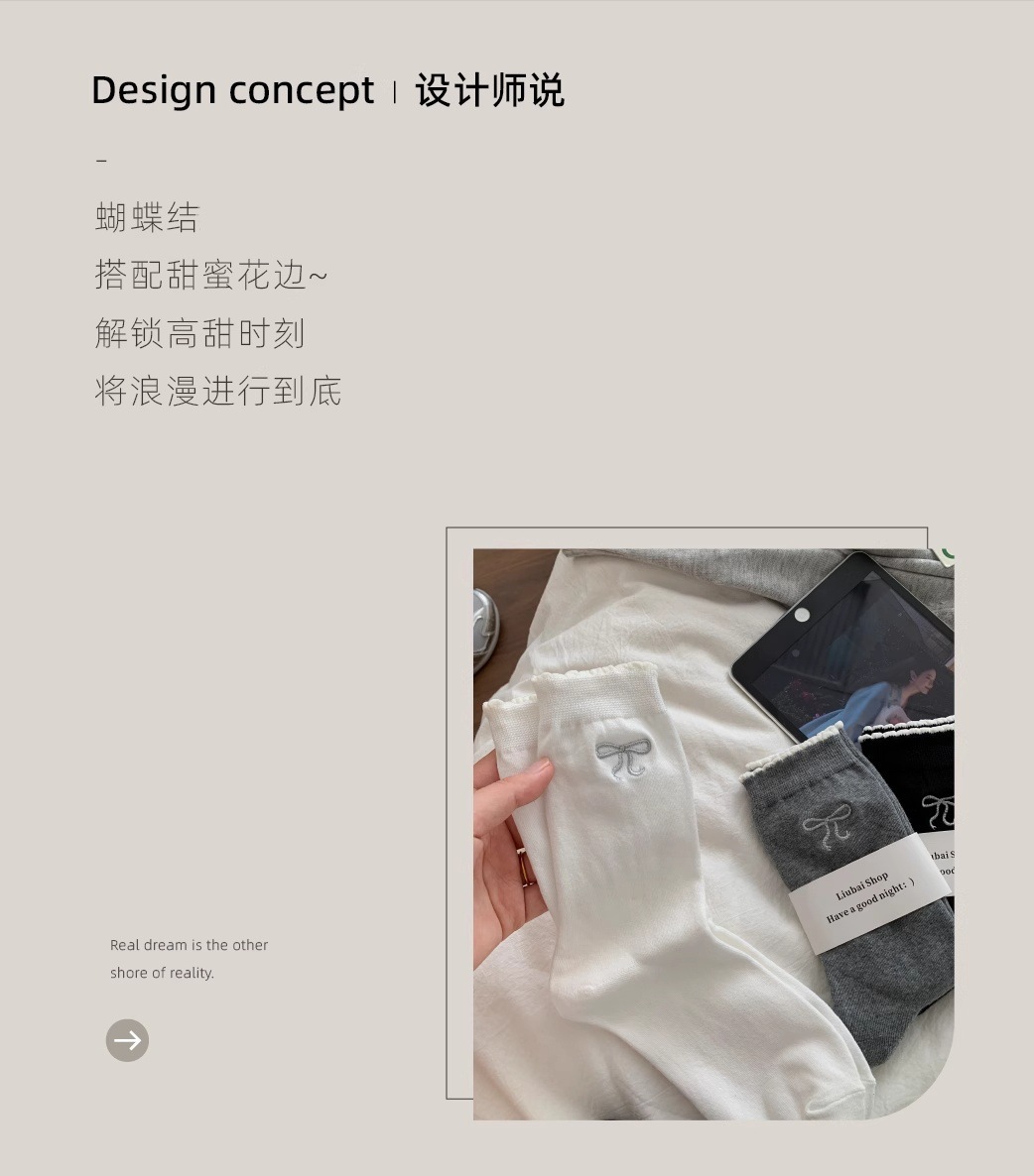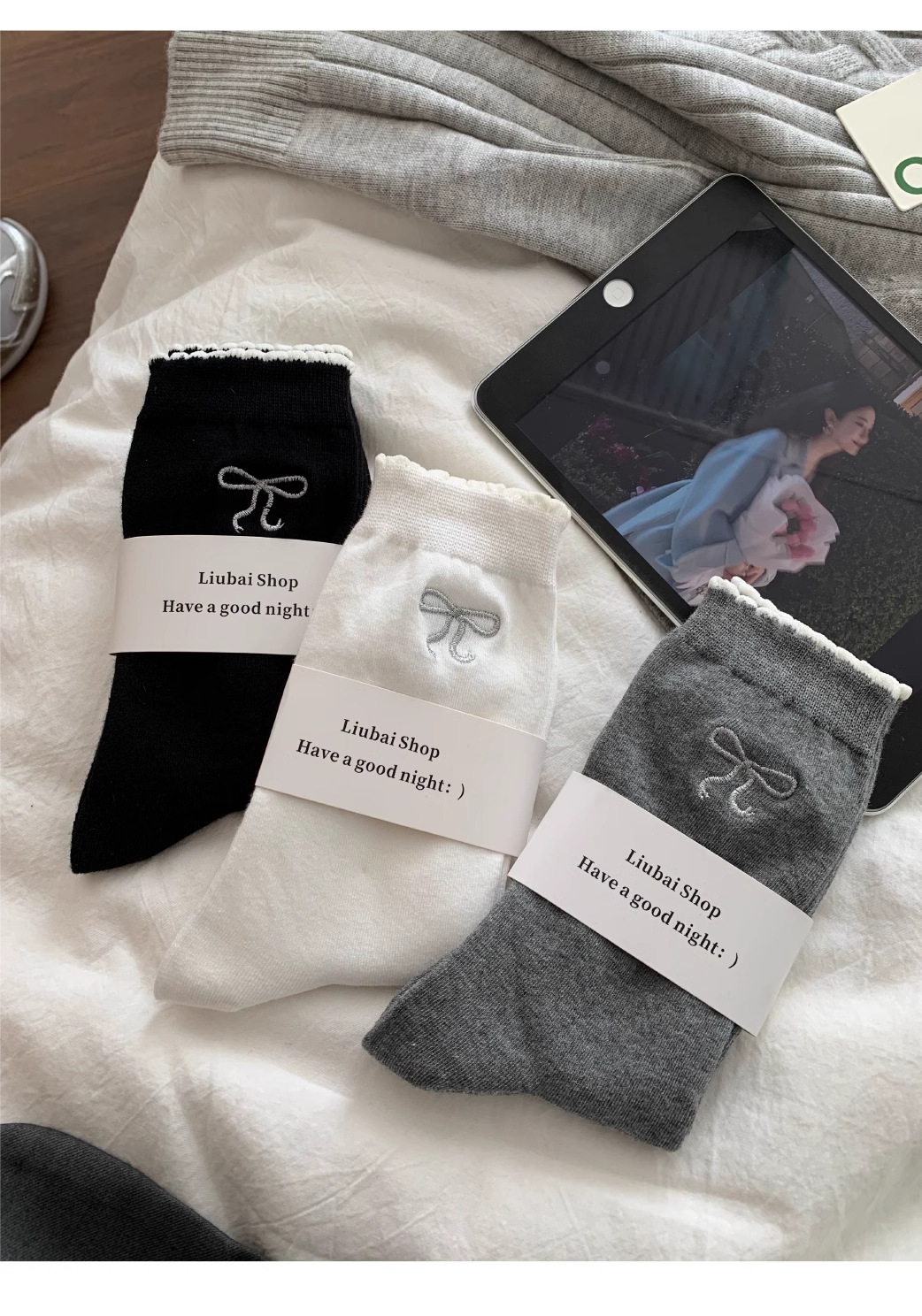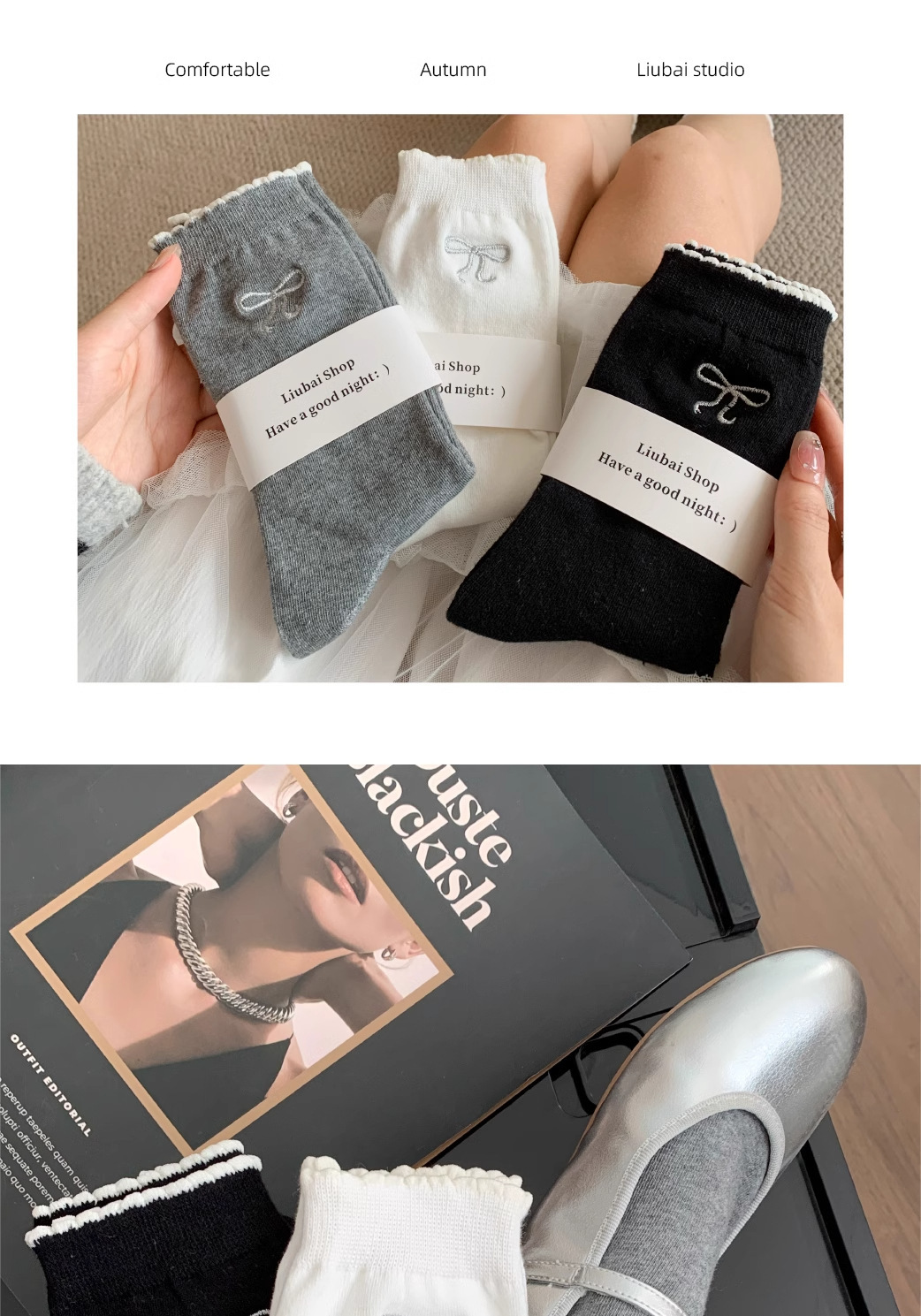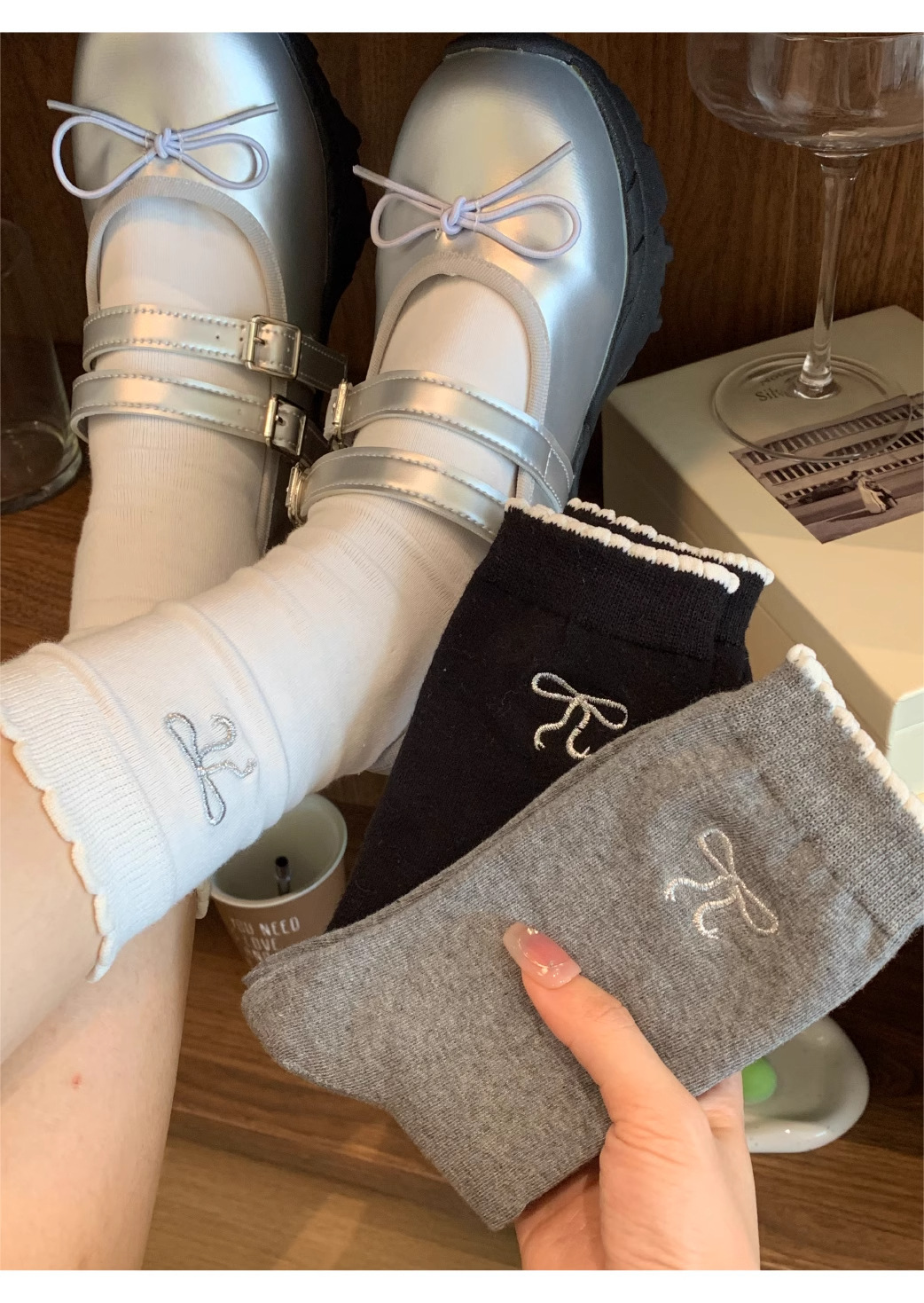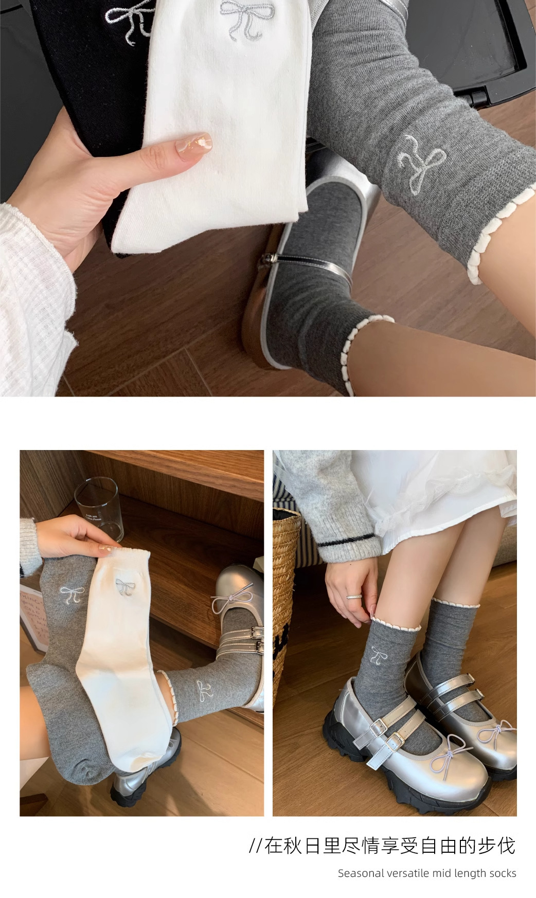 여성용 심플 발레 스타일 양말, 인터넷 연예인 리본 양말, 미우 그레이 양말, 일본식 레이스 양말스토어 가기