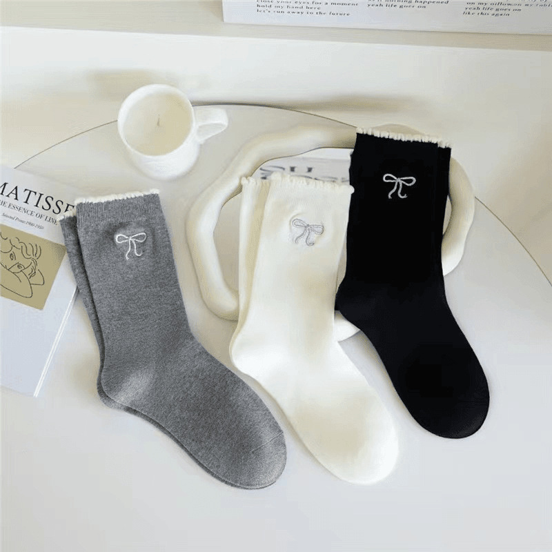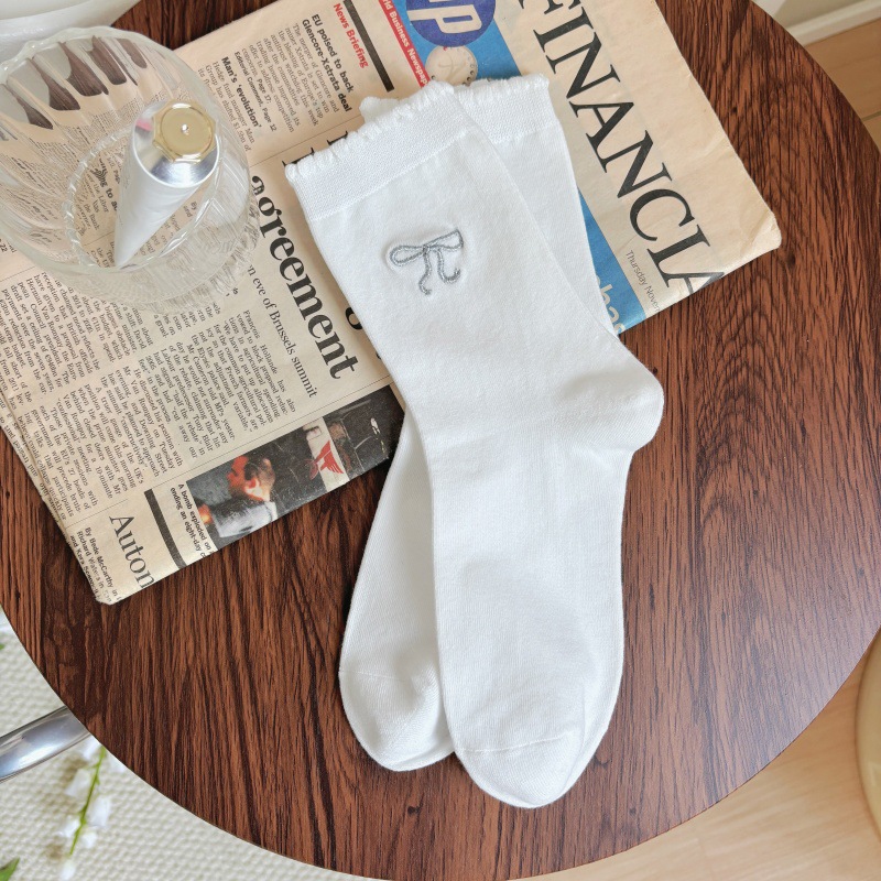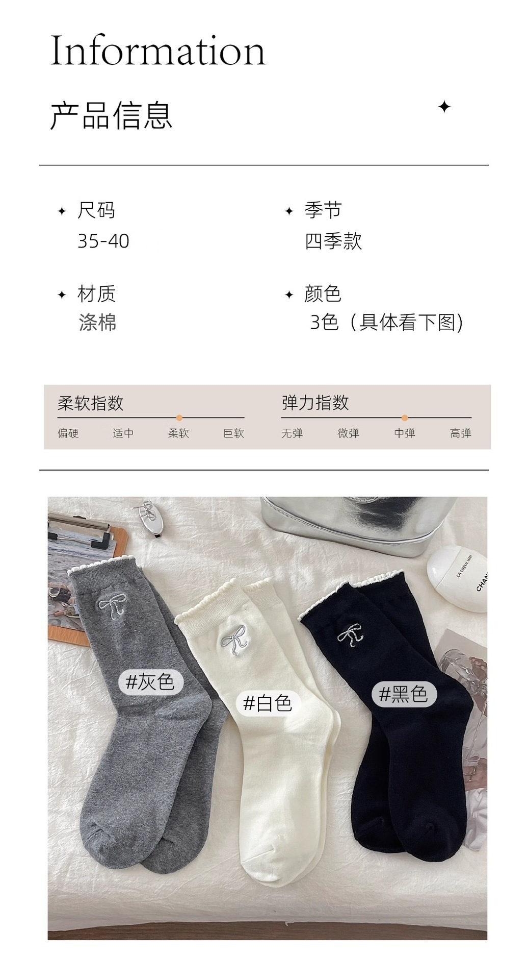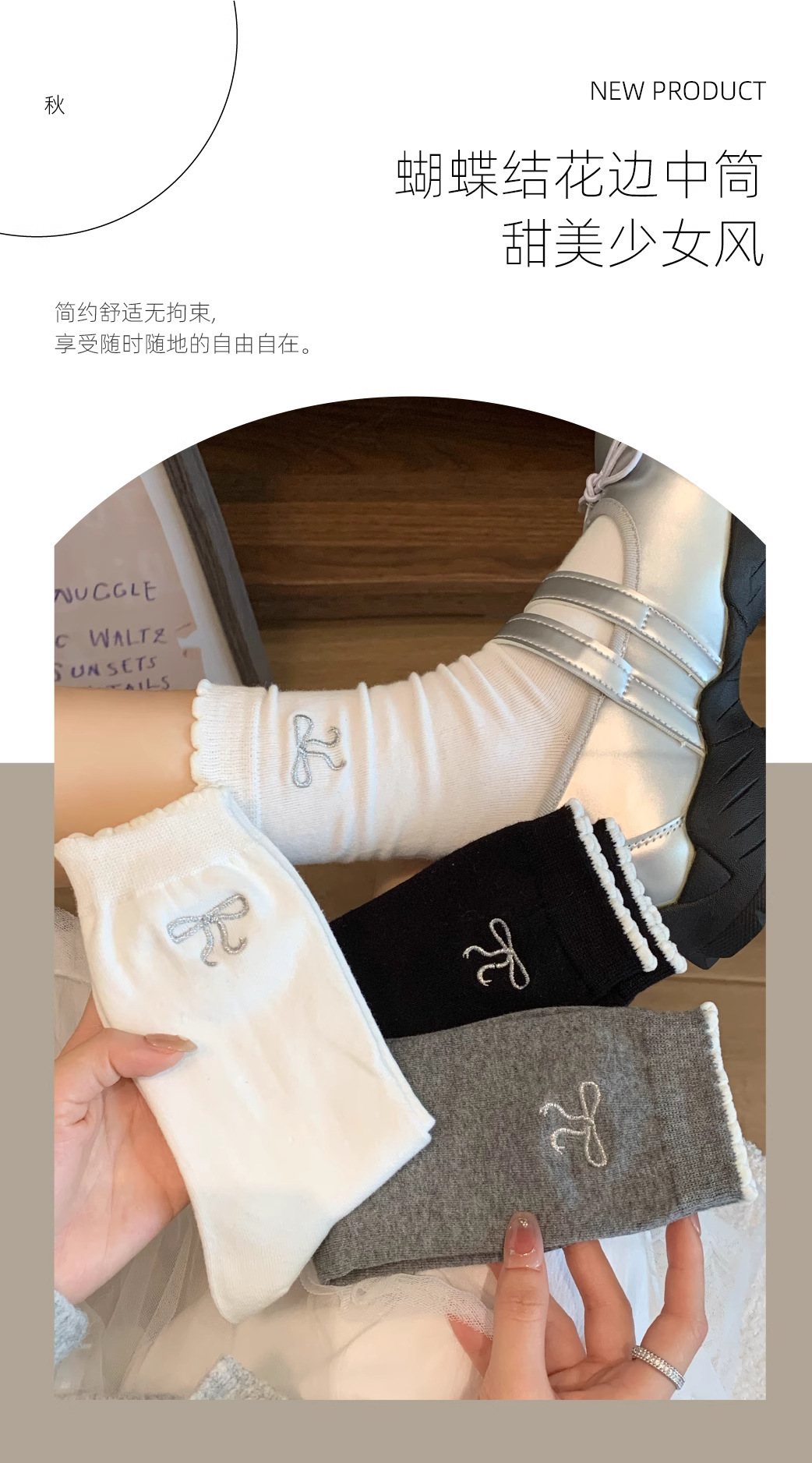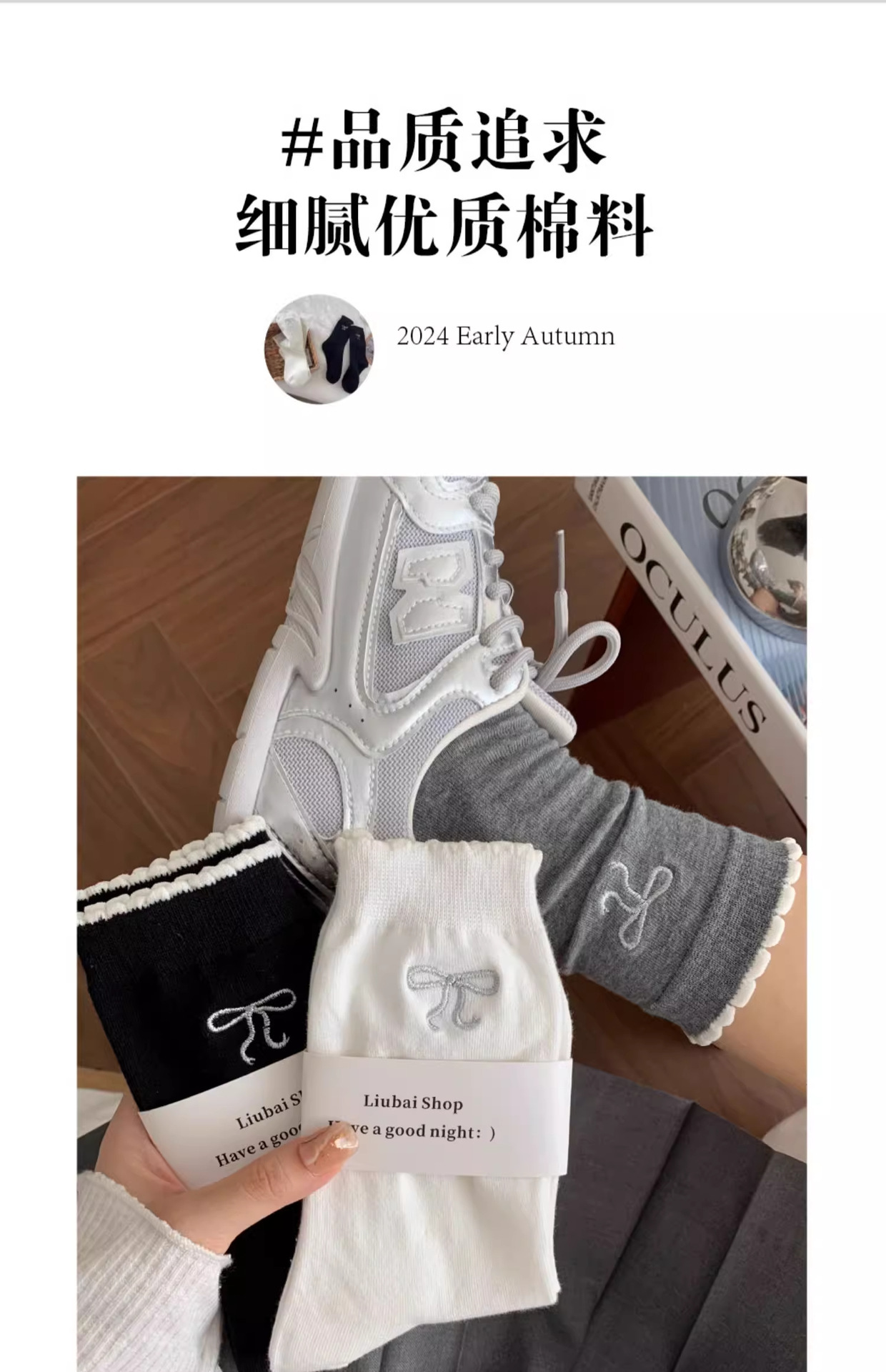 여성용 심플 발레 스타일 양말, 인터넷 연예인 리본 양말, 미우 그레이 양말, 일본식 레이스 양말스토어 가기