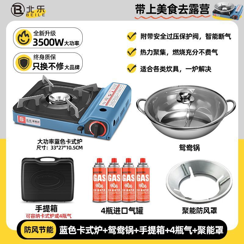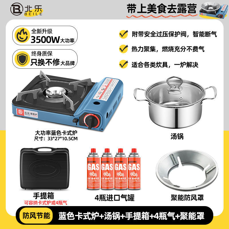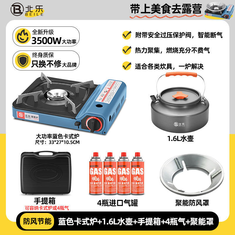• 블루카드 스토브 + [1.6냄비] + 가스 4병 + 박스 + 에너지 수집 방풍커버 - [진정한 방풍 에너지 수집] 새롭게 업그레이드된 3500W 블루 카드 스토브