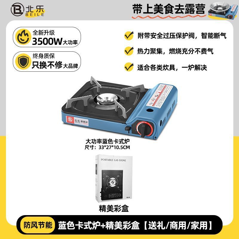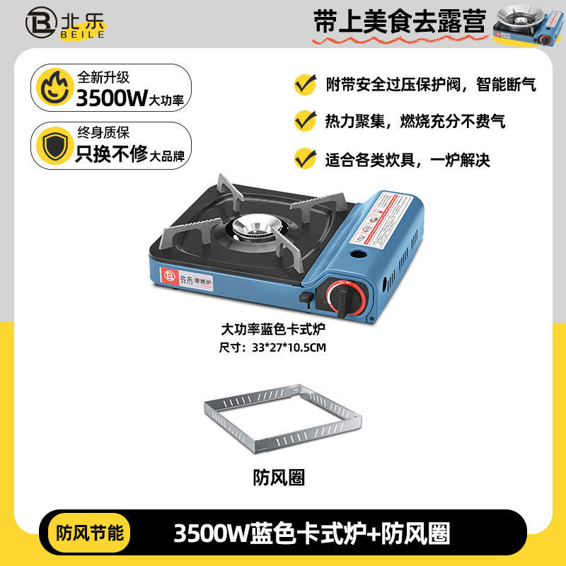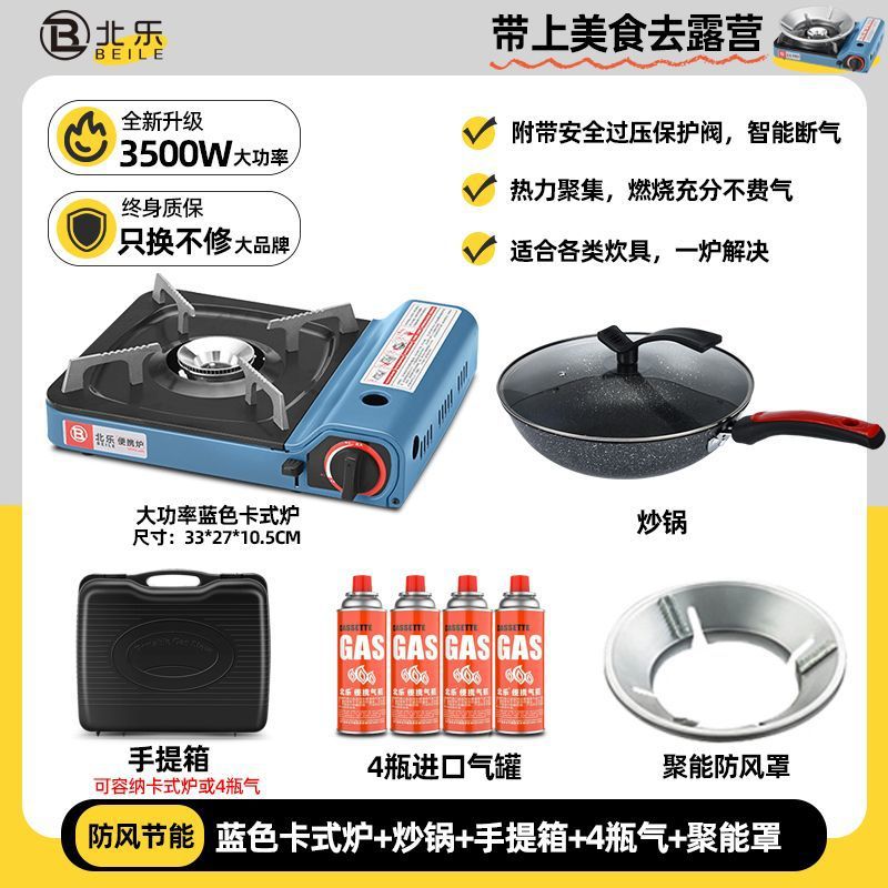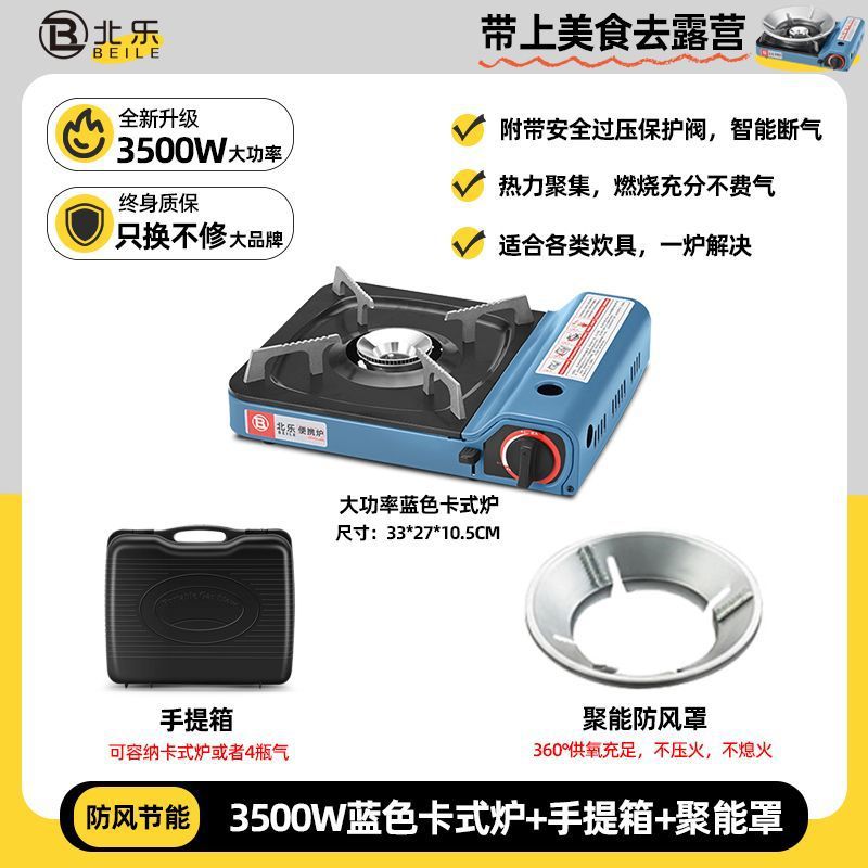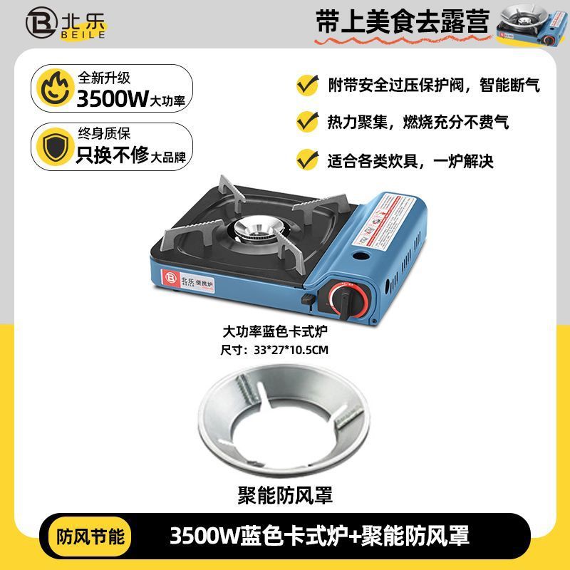 • 블루카드 스토브 + [철판 베이킹 팬] + 가스 4병 + 박스 + 에너지 수집 방풍 커버 - [진정한 방풍 에너지 수집] 새로 업그레이드된 3500W 블루 카드 스토브