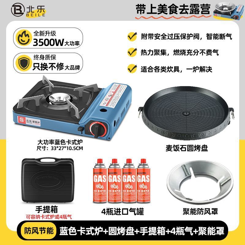 • 블루카드 스토브 + [원형 베이킹 팬] + 가스 4병 + 박스 + 에너지 수집 방풍 커버 - [진정한 방풍 에너지 수집] 새로 업그레이드된 3500W 블루 카드 스토브