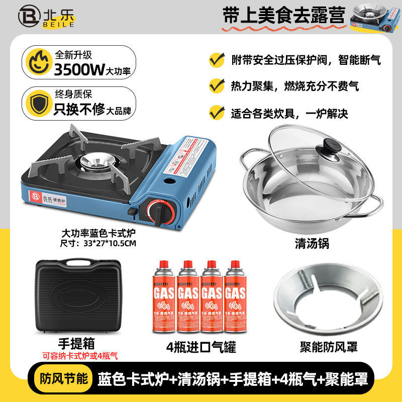 • 블루카드 스토브 + [단일 바닥 냄비] + 가스 4병 + 상자 + 에너지 수집 방풍 커버 - [진정한 방풍 에너지 수집] 새로 업그레이드된 3500W 블루 카드 스토브