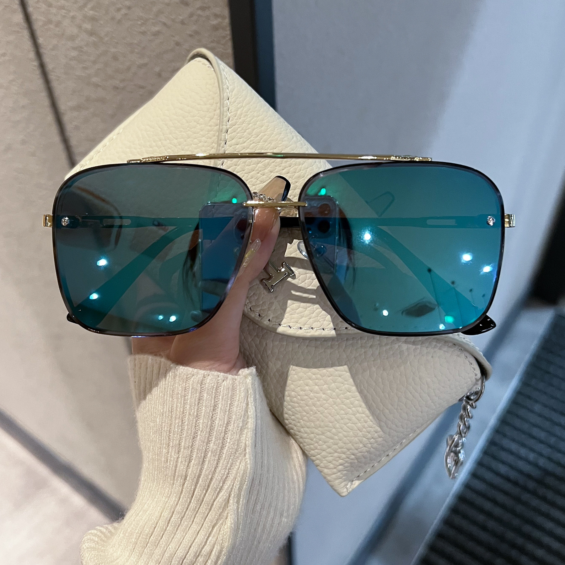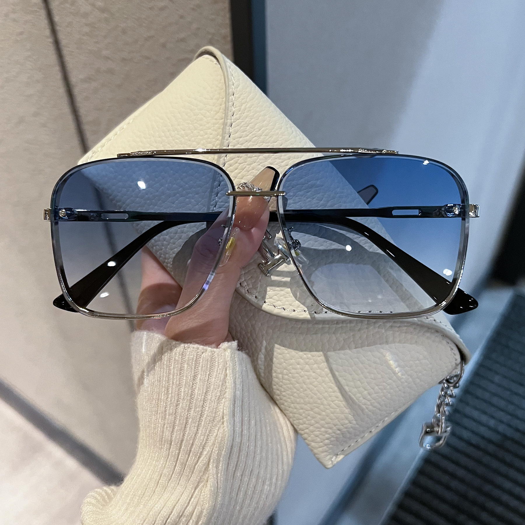 2024 새로운 투명 블루 선글라스 남자 복고풍 더블 빔 운전 선글라스 여행 여행 UV 보호스토어 가기