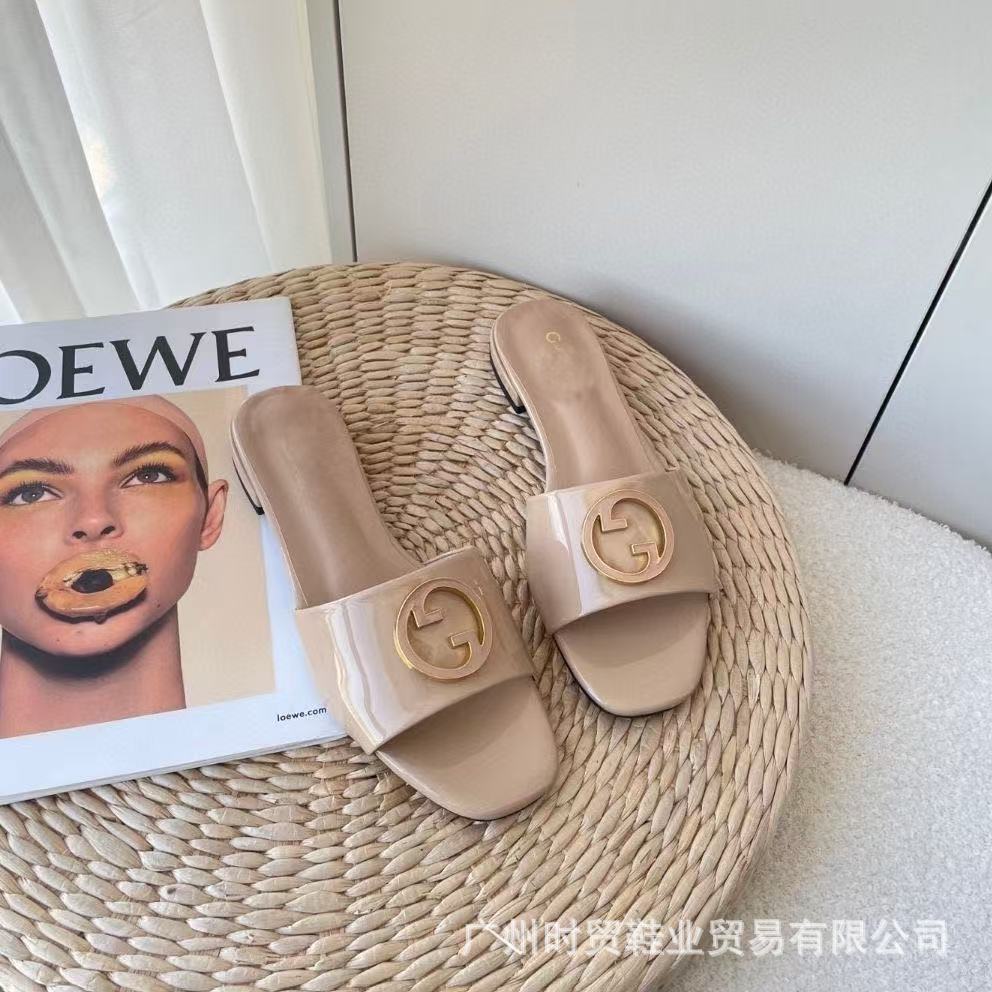 2025 새로운 G 홈 유럽과 미국 여성 슬리퍼 금속 버클 문자 외부 착용 비치 슬리퍼 제조 업체 슬리퍼스토어 가기