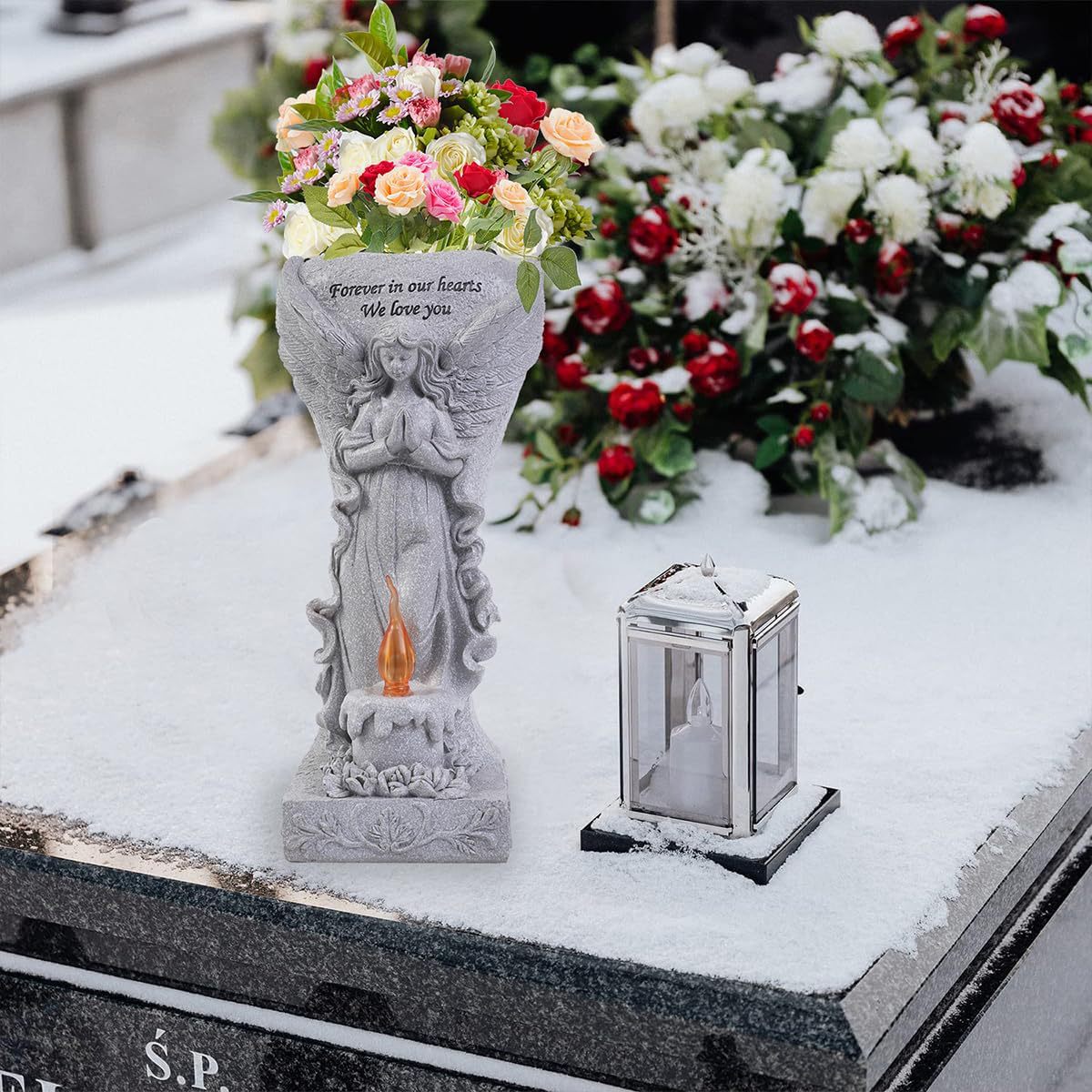 묘지 기념 선물 정원 천사 동상, 기도 천사 꽃병, 기념석 묘지 장식
