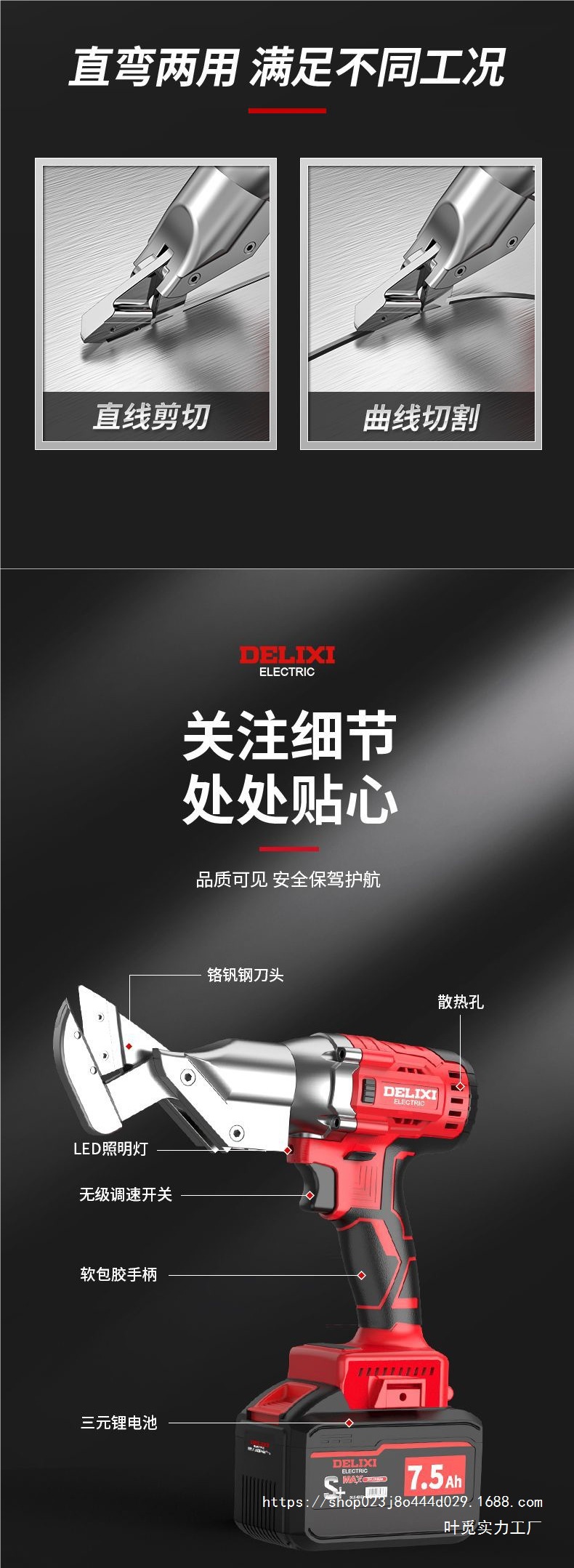 • 브러시리스 직선 및 곡선 이중 목적 금속 가위 21V7.h 배터리 2개 및 충전기 1개