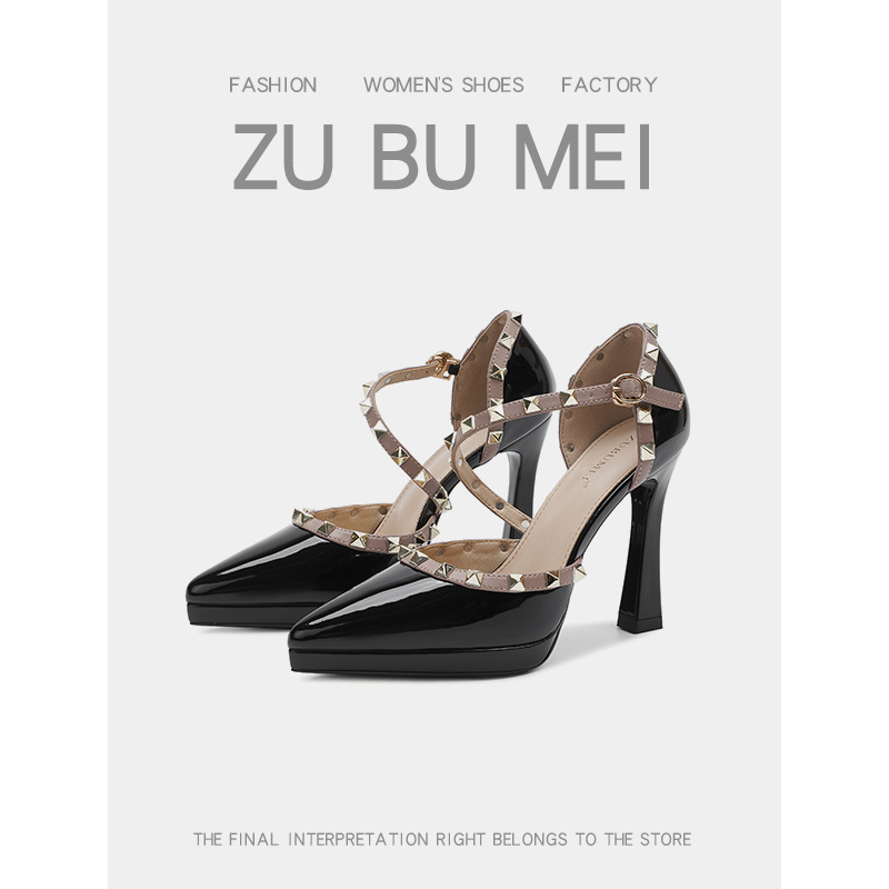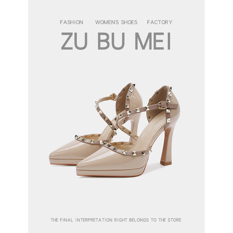 105-8 섹시한 리벳 하이힐 여성용 바오터우 중공 하이힐 샌들 여성용 뾰족한 발가락 스틸레토 힐 여성용 플랫폼 슈즈