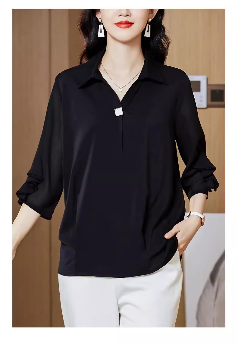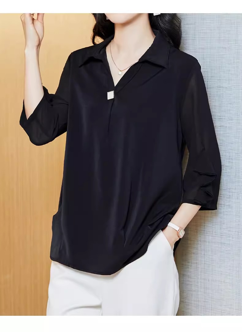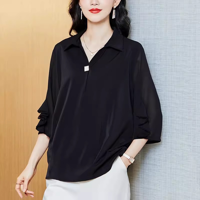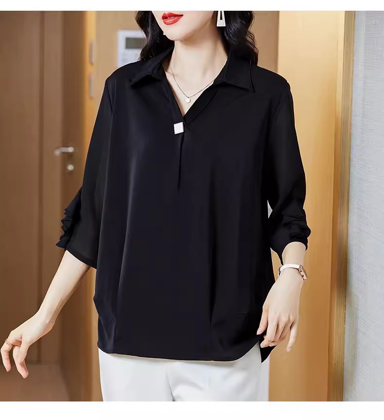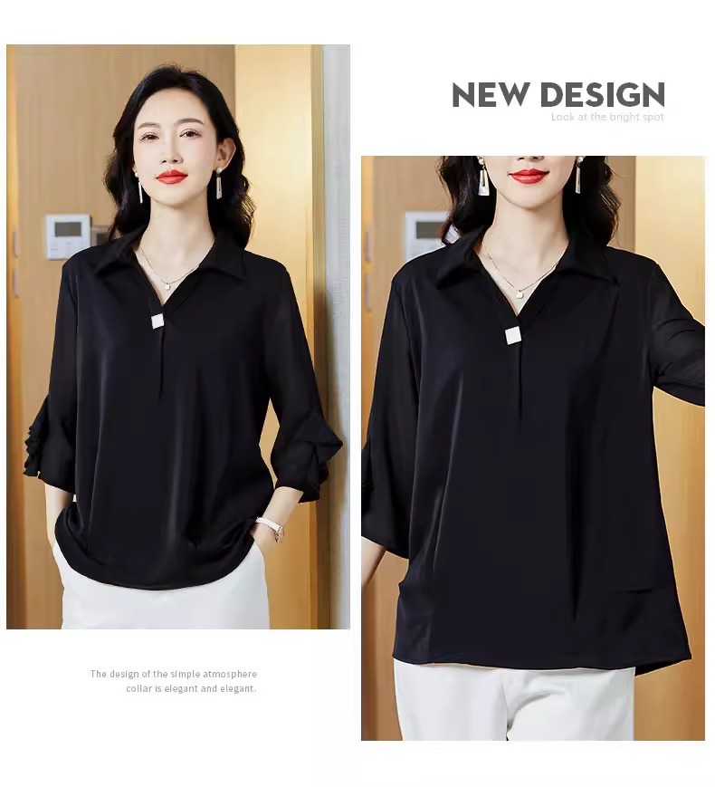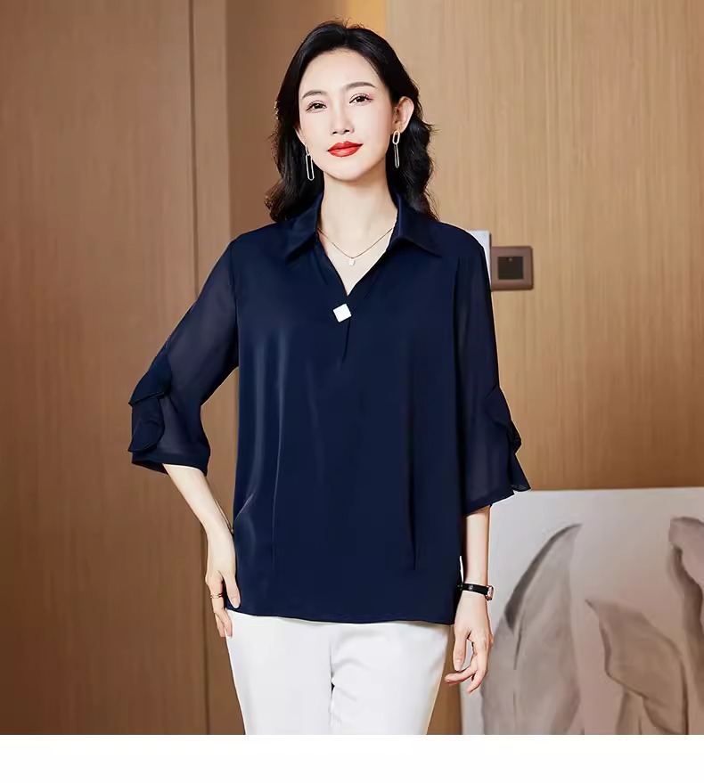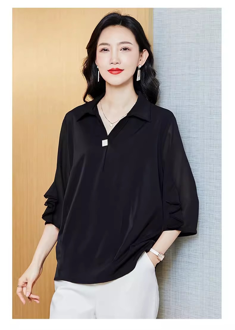 여성을위한 얼음 실크 반팔 쉬폰 셔츠 2025 새로운 여름 대형 스타일 중년 어머니 기질 하이 엔드 솔리드 컬러 탑