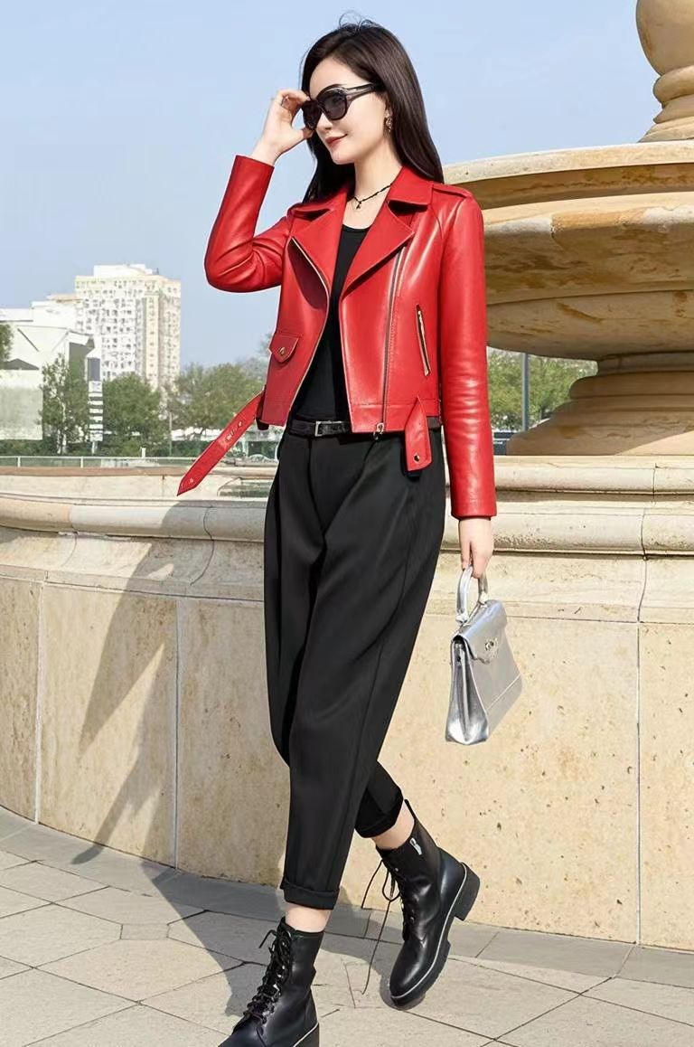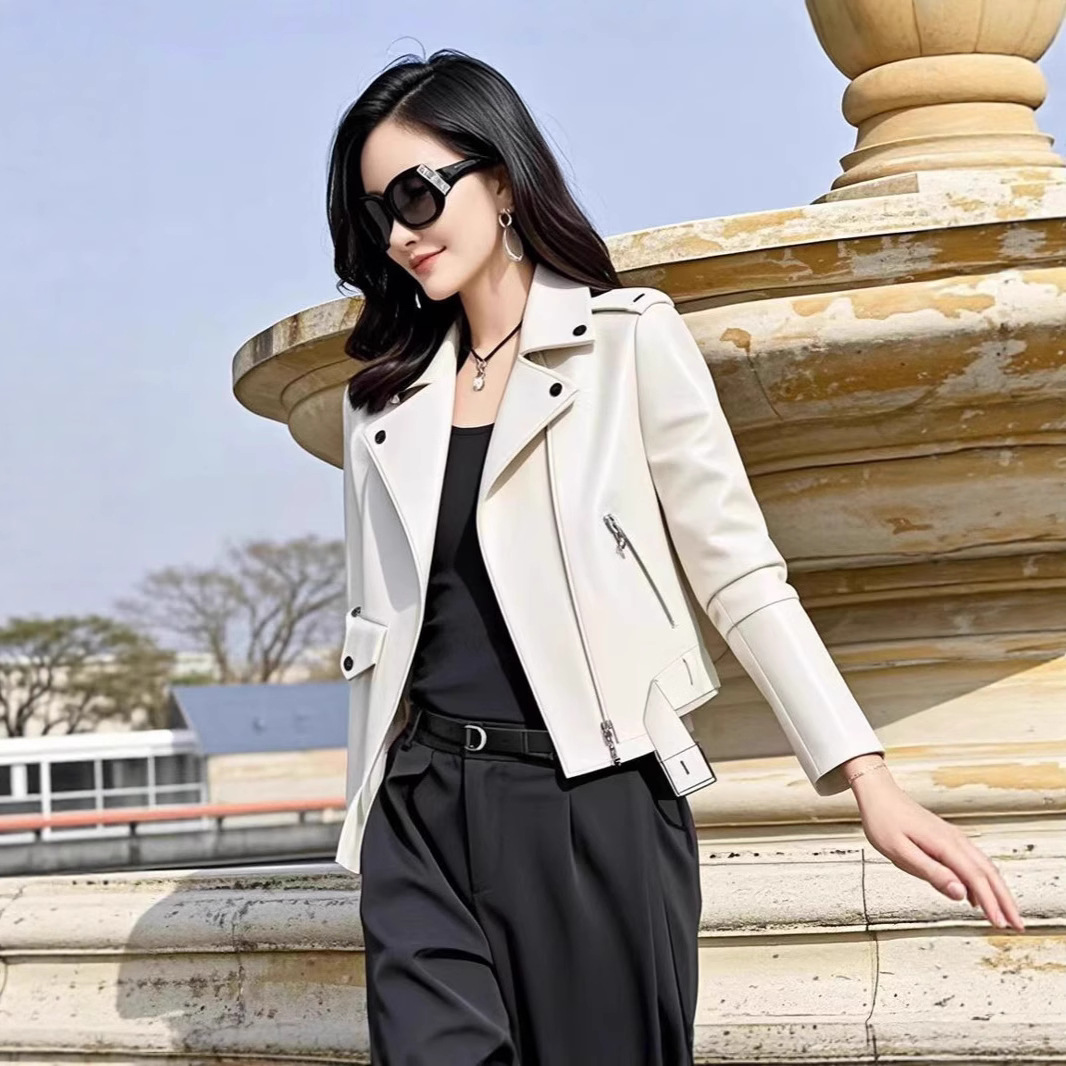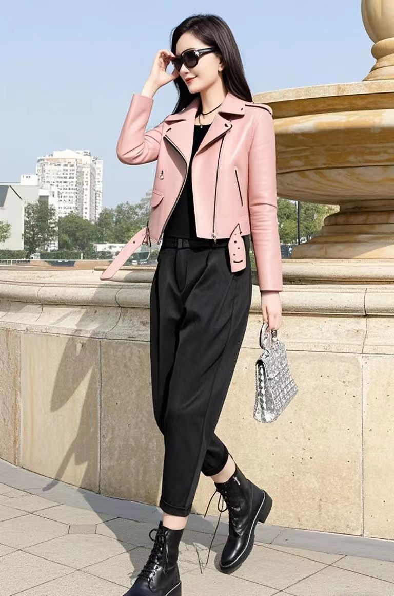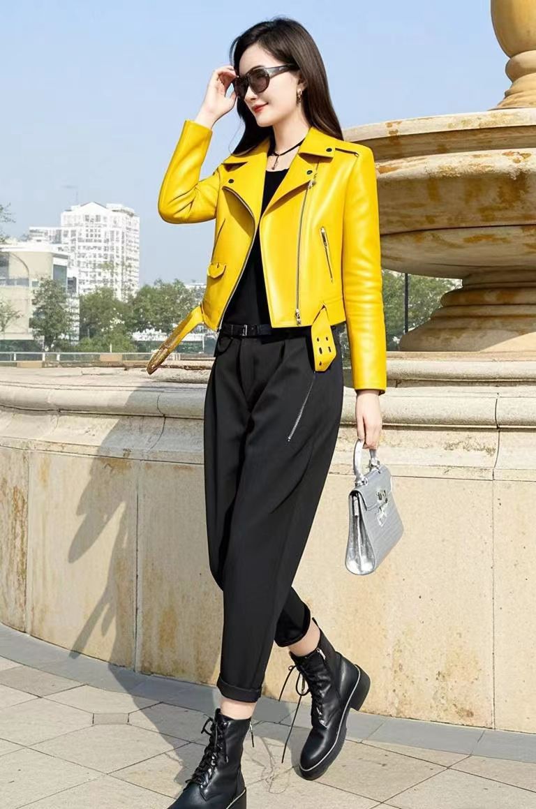 가죽 자켓 여성용 옐로우 핑크 블랙 레귤러 스타일 PU 가죽 2025 새로운 한국 스타일 여성용 다용도 오토바이 가죽 자켓