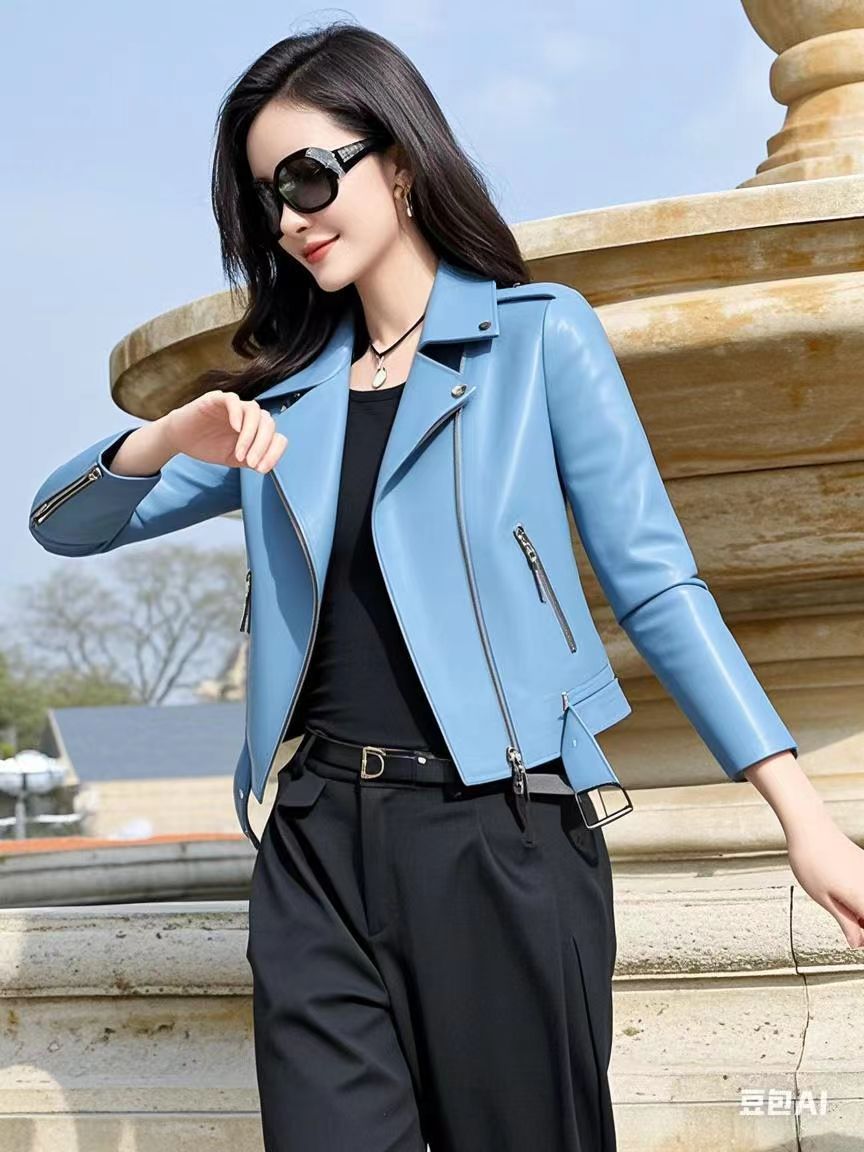 가죽 자켓 여성용 옐로우 핑크 블랙 레귤러 스타일 PU 가죽 2025 새로운 한국 스타일 여성용 다용도 오토바이 가죽 자켓스토어 가기