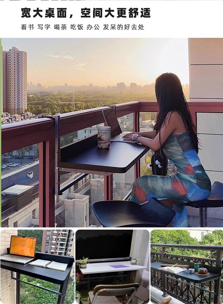 발코니 난간 걸이 테이블, 걸이식 리프트 테이블, 야외 소형 바 테이블, 알루미늄 합금 가정용 기숙사 접이식 책 식탁스토어 가기