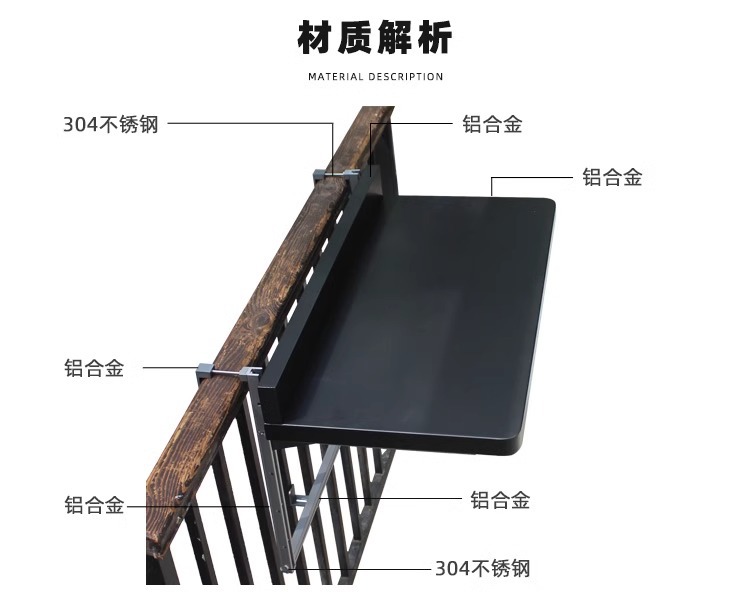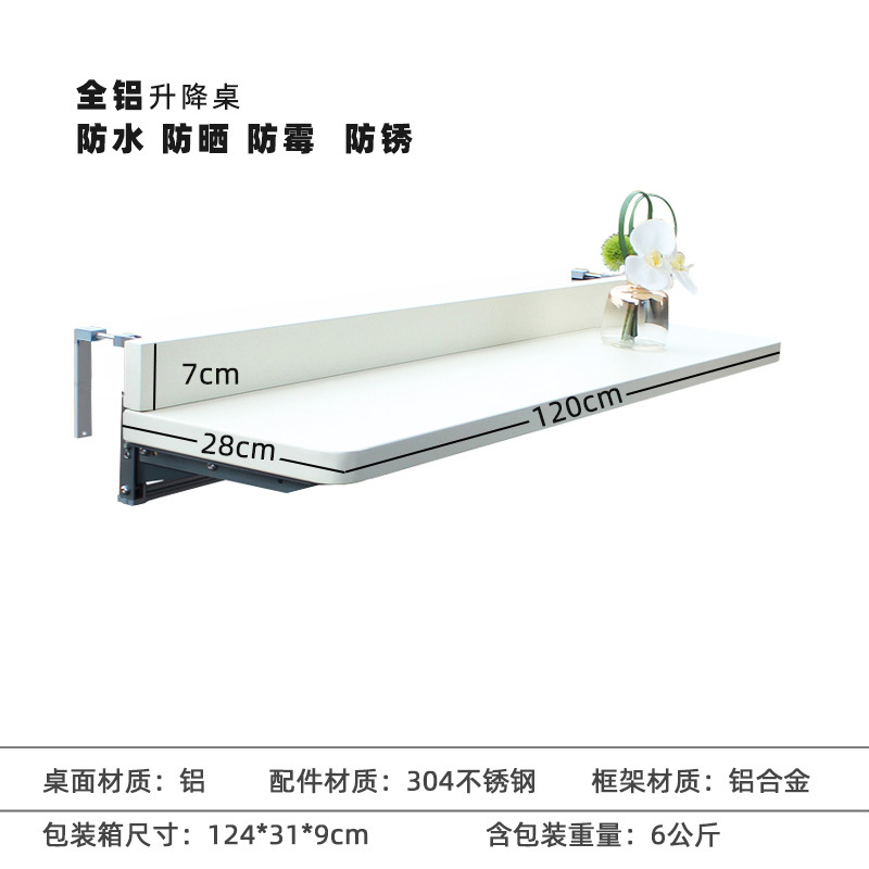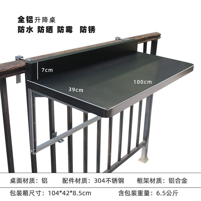 발코니 난간 걸이 테이블, 걸이식 리프트 테이블, 야외 소형 바 테이블, 알루미늄 합금 가정용 기숙사 접이식 책 식탁