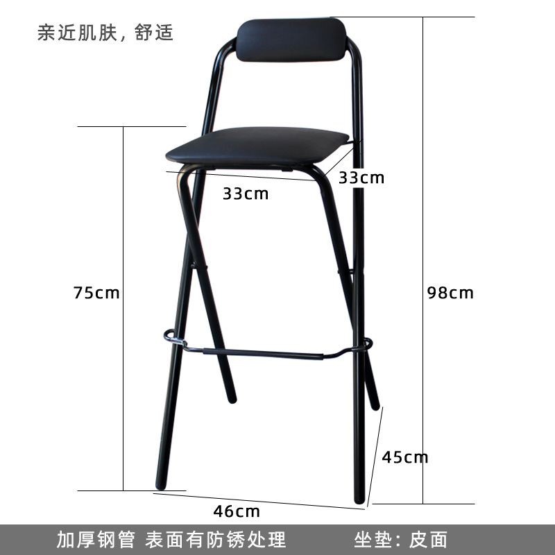 • 앉은 키 75cm 검정색 사각형 덮개를 씌운 접이식 바 의자