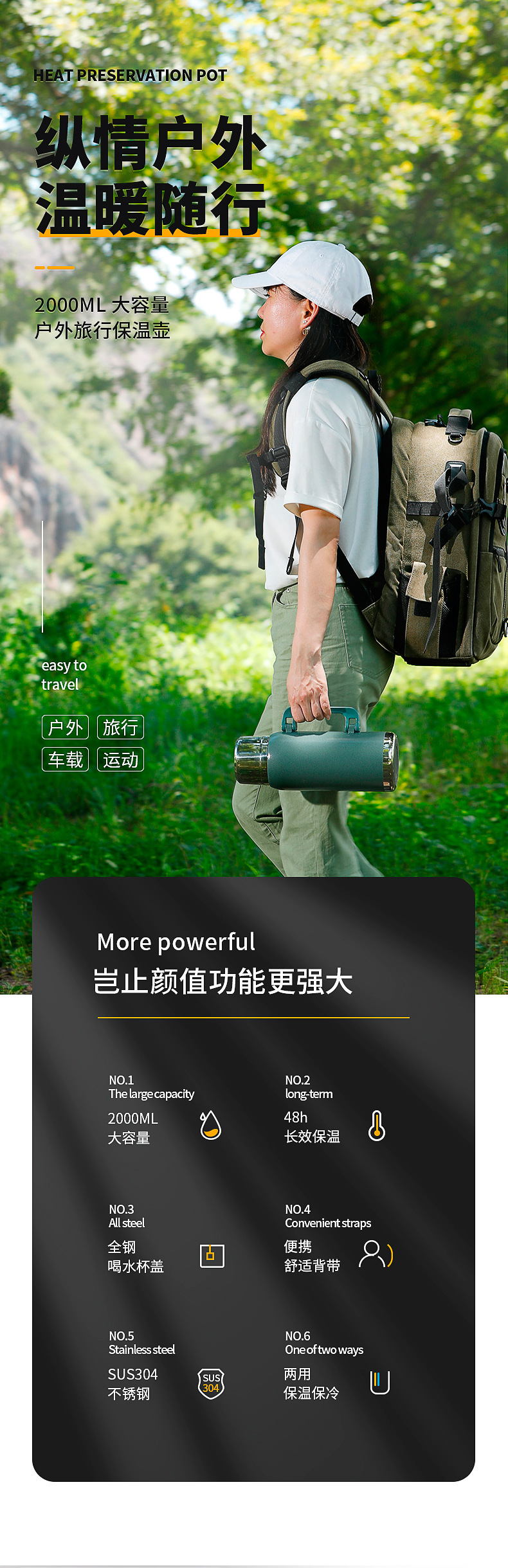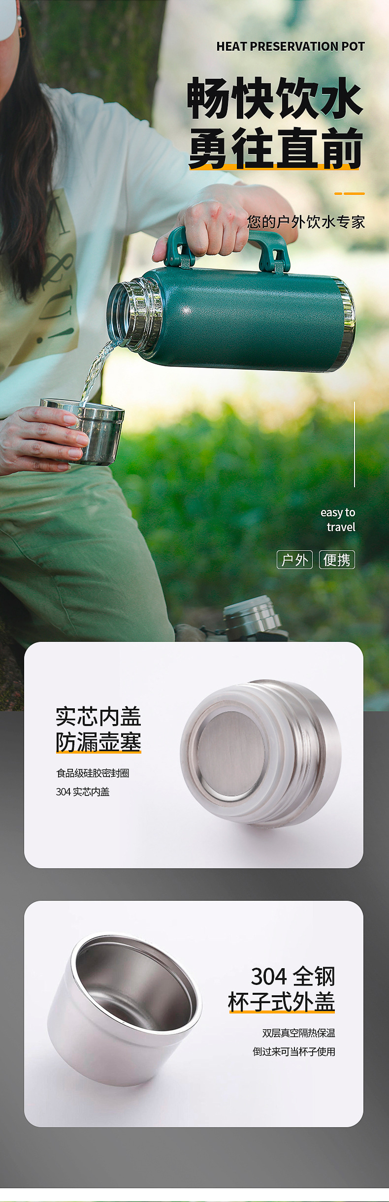 대용량 304 스테인레스 스틸 절연 물 컵 야외 여행 스포츠 절연 주전자 등산 휴대용 손잡이 사이클링 주전자