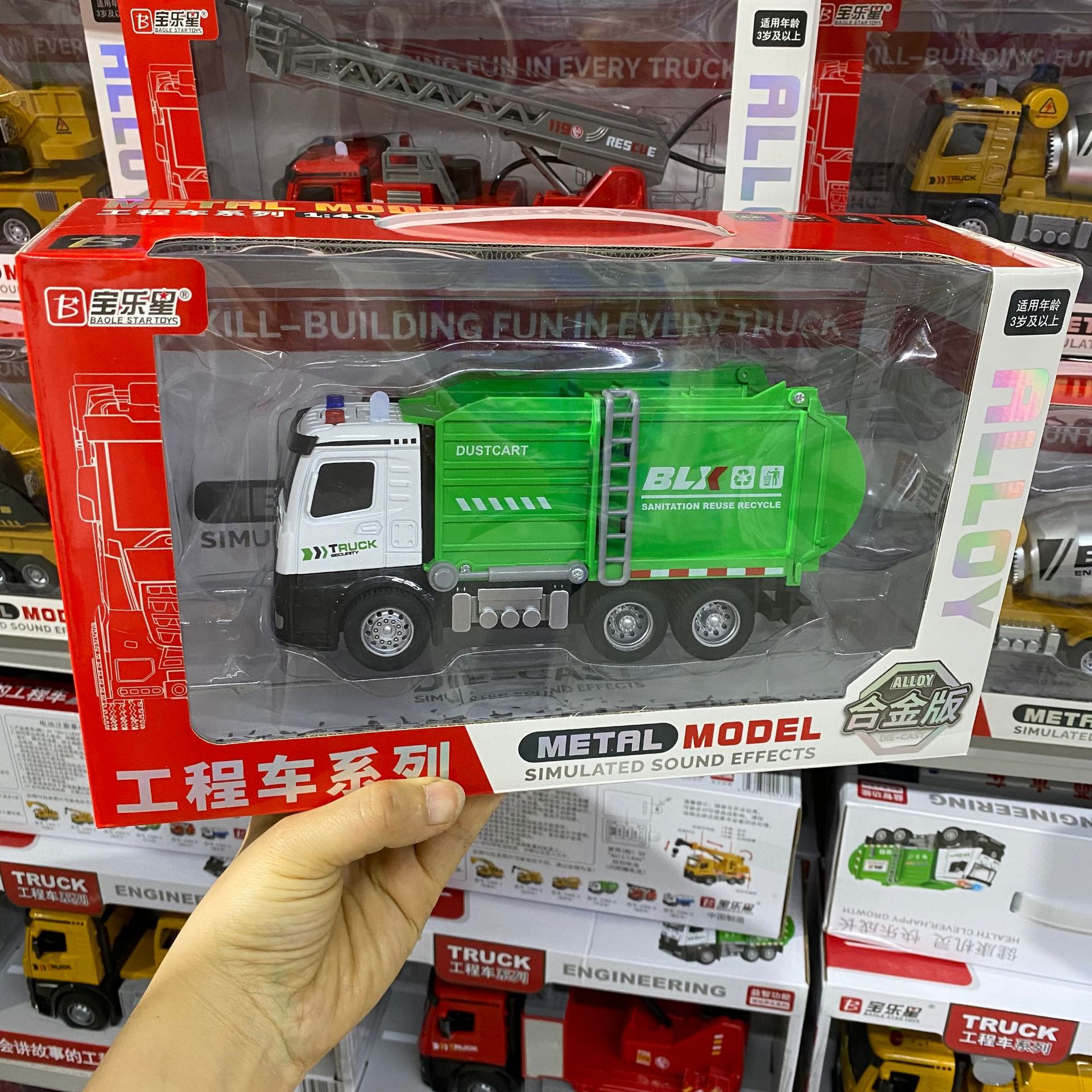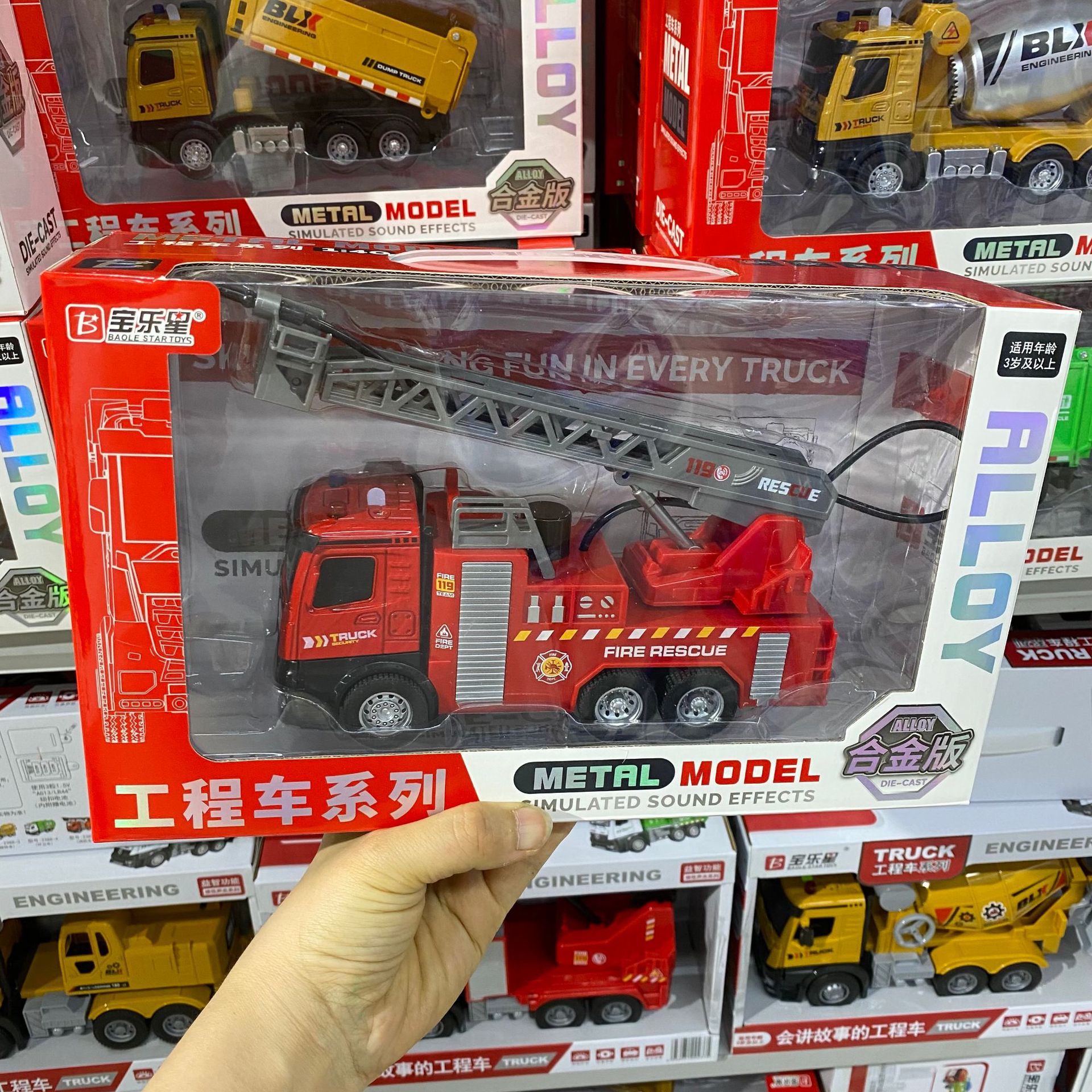새로운 Baolai Nebula 사다리 소방차 소리와 빛 관성 크레인 위생 트럭 모델 어린이 소년 선물스토어 가기