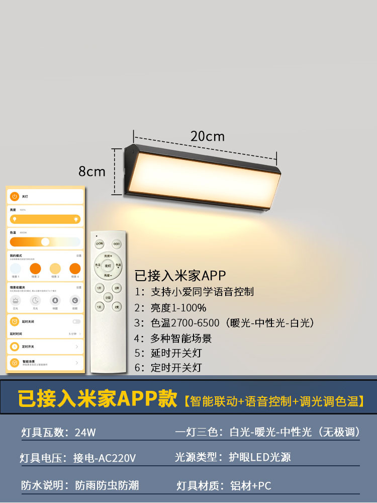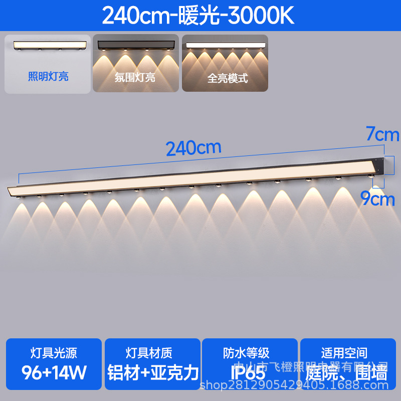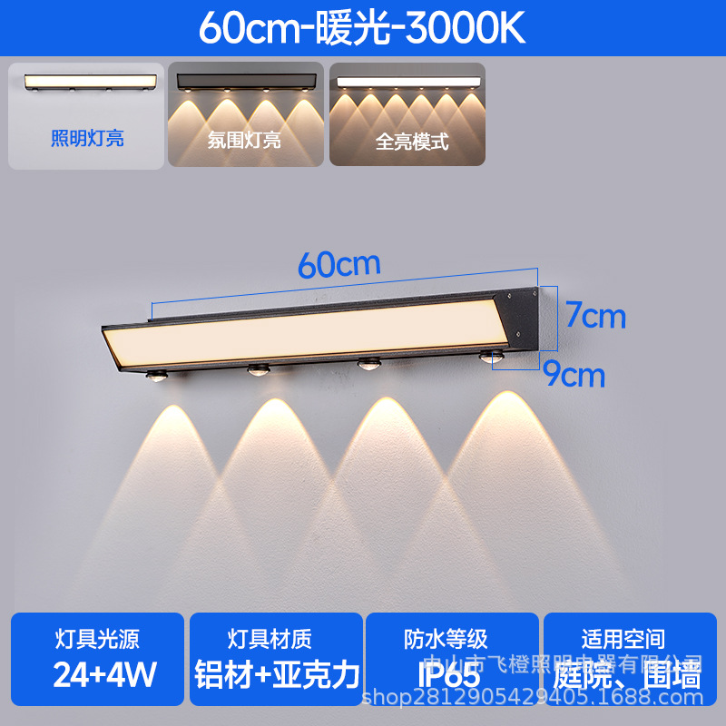 야외 벽 램프 방수 빌라 안뜰 발코니 야외 스트립 조명 벽 램프 썬 룸 슈퍼 밝은 테라스 도어 헤드 라이트