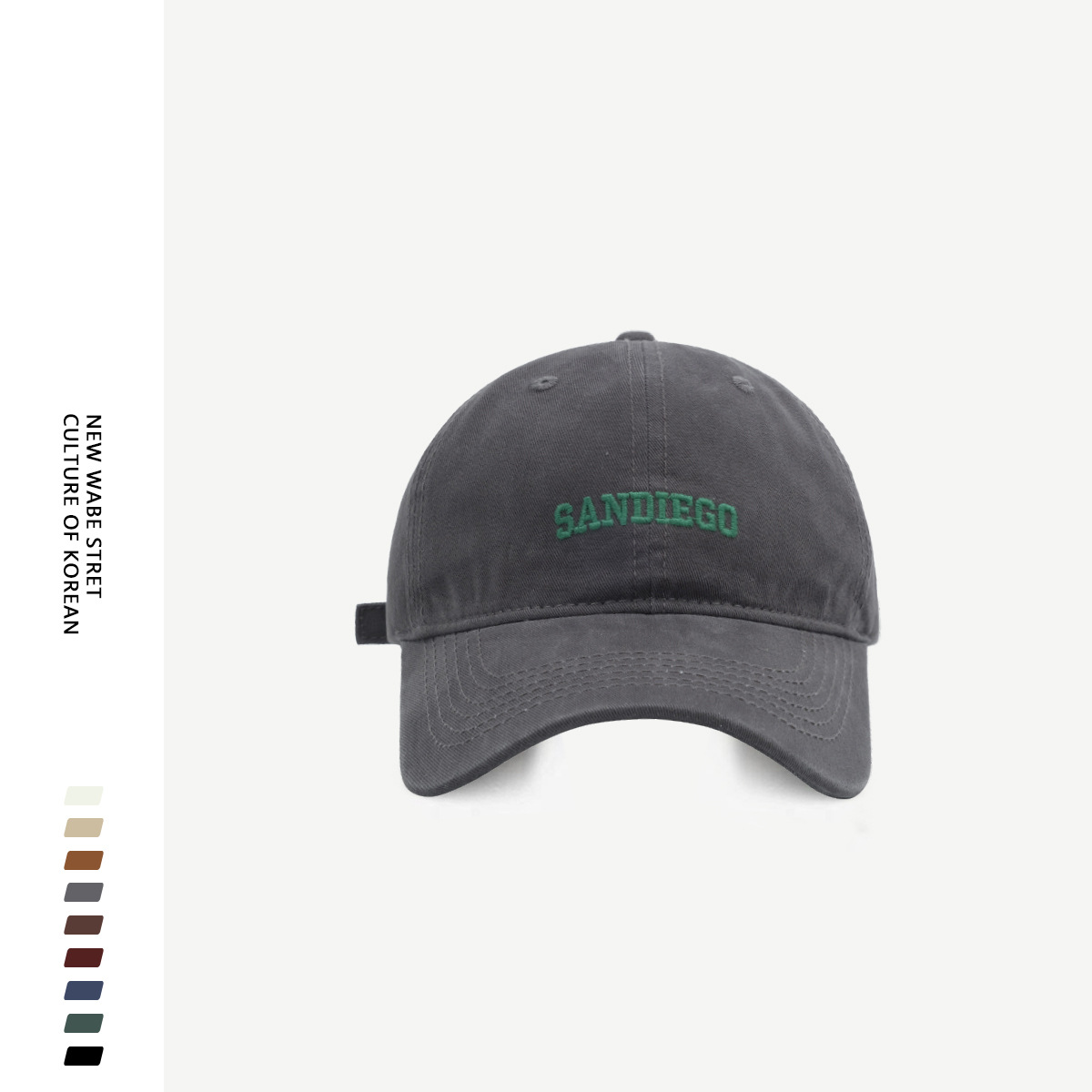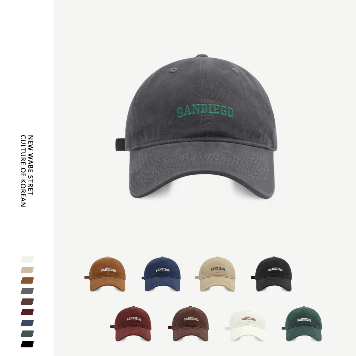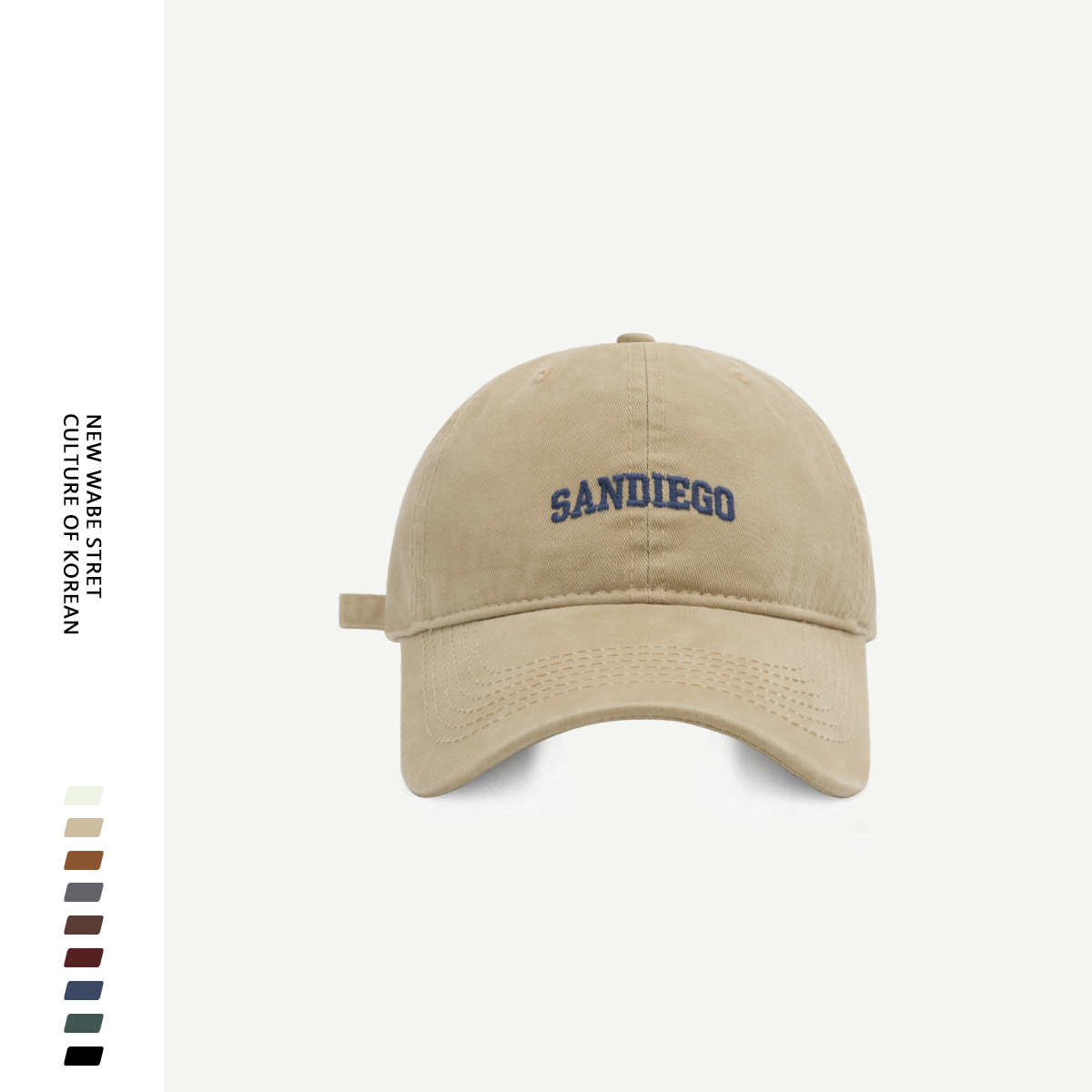 트렌디한 브랜드 레터 자수 워싱 코튼 소프트 탑 남녀공용 야구모자, 한국형 사계절 활용도 높은 스트리트 피크캡, 얼굴이 작아 보이는스토어 가기