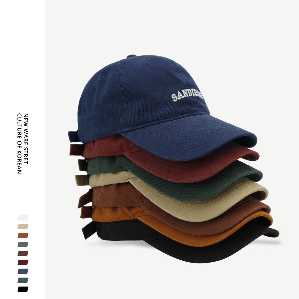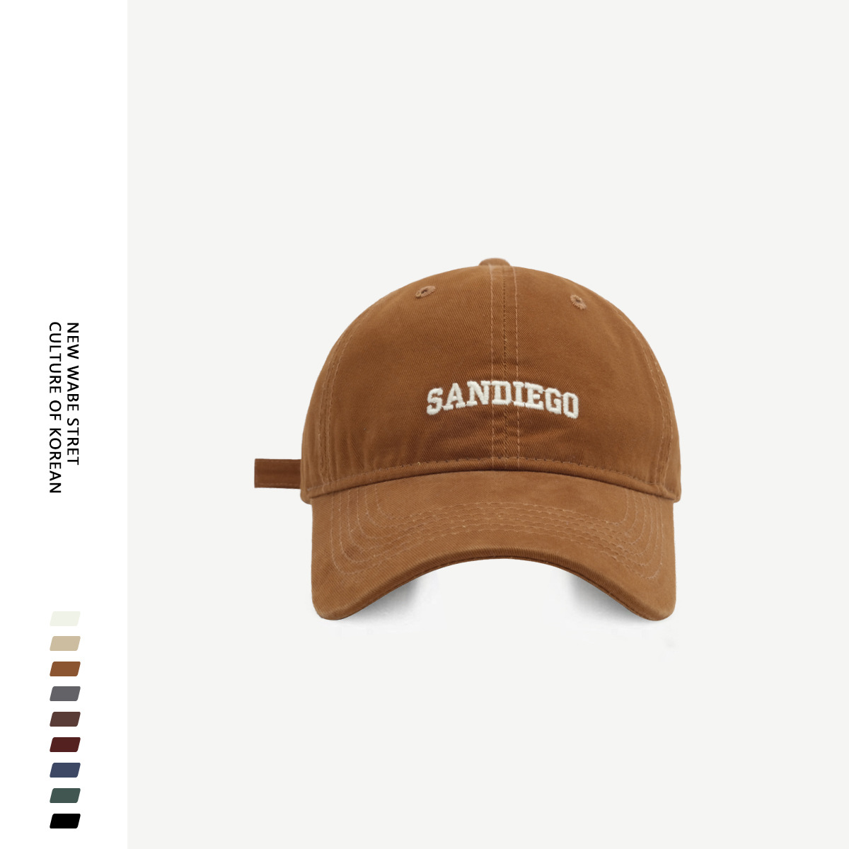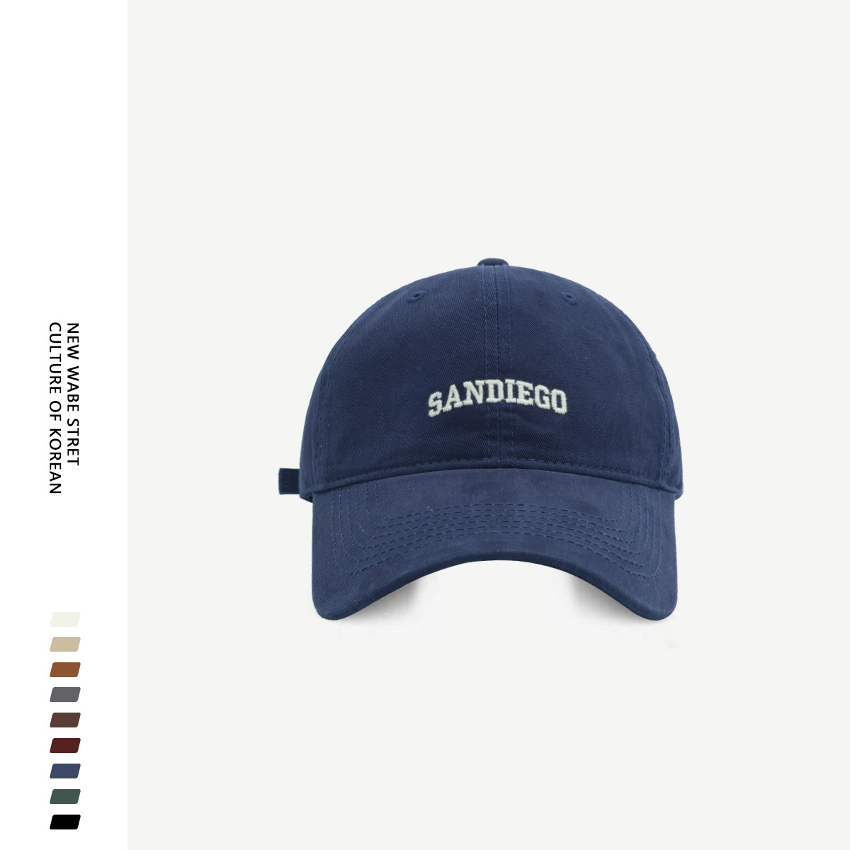 트렌디한 브랜드 레터 자수 워싱 코튼 소프트 탑 남녀공용 야구모자, 한국형 사계절 활용도 높은 스트리트 피크캡, 얼굴이 작아 보이는스토어 가기