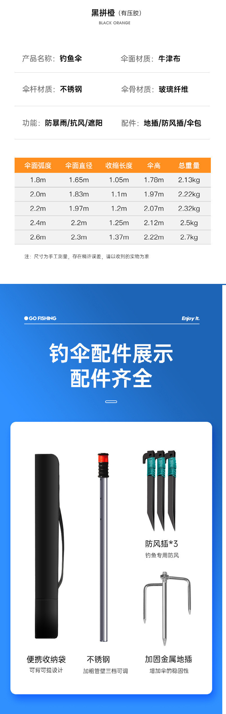 • 강풍과 폭우에 강한 심리스 테이프 2.2m 블랙 오렌지