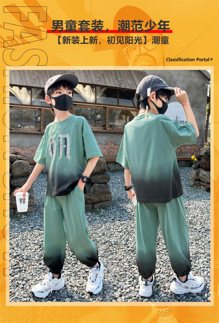 어린이 트렌디하고 멋진 여름 반팔 양복, 큰 어린이를 위한 패셔너블한 얇은 티셔츠, 루즈한 스포츠 바지 투피스 세트스토어 가기