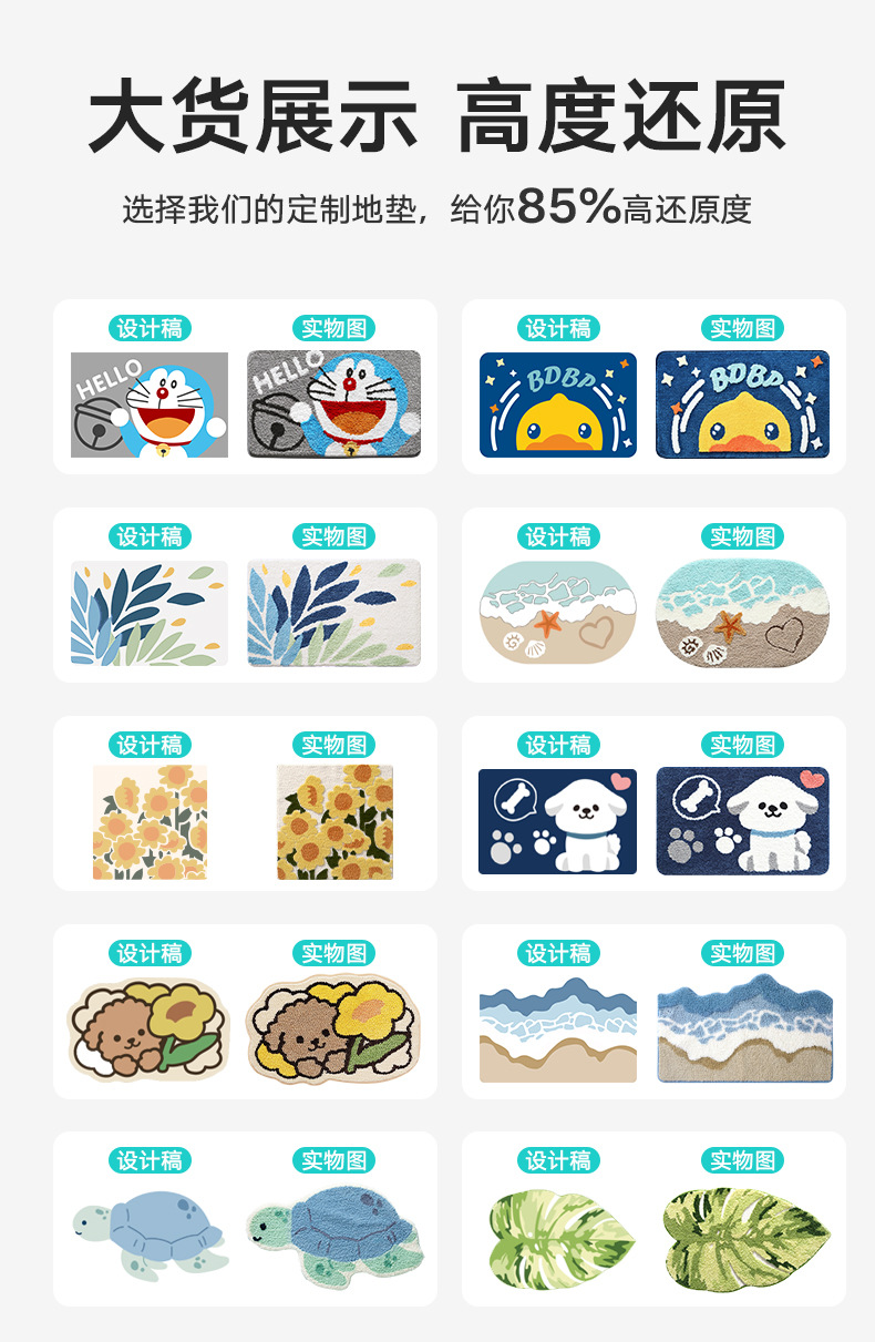 Dajiang 국내 판매 국경 간 가벼운 맞춤형 바닥 매트 카펫 IP 라이센스 욕실 흡수성 미끄럼 방지 매트 속건성 발 매트 플로킹스토어 가기