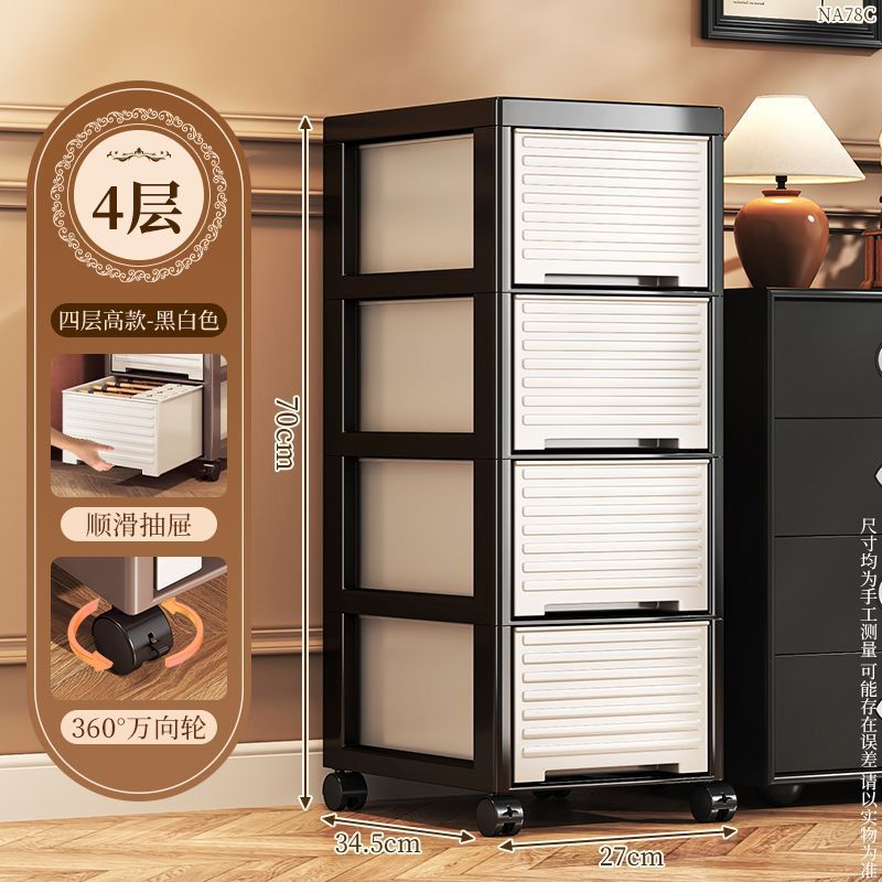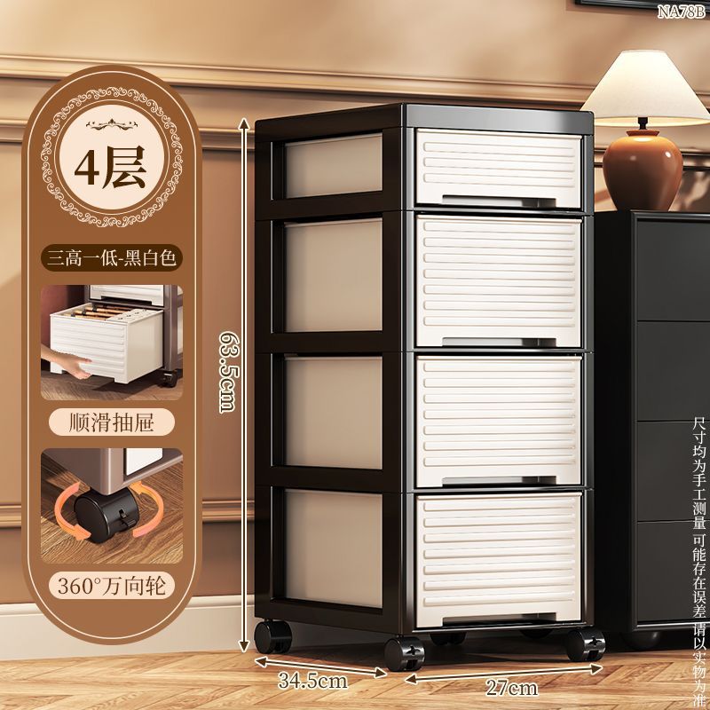 • NA78C-서랍장 트롤리 모델 바퀴가 있는 4층 높이 모델-모던 스타일-블랙
