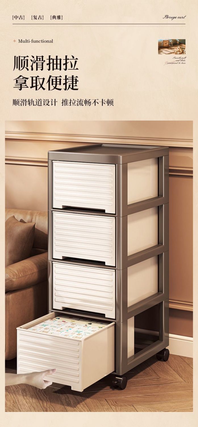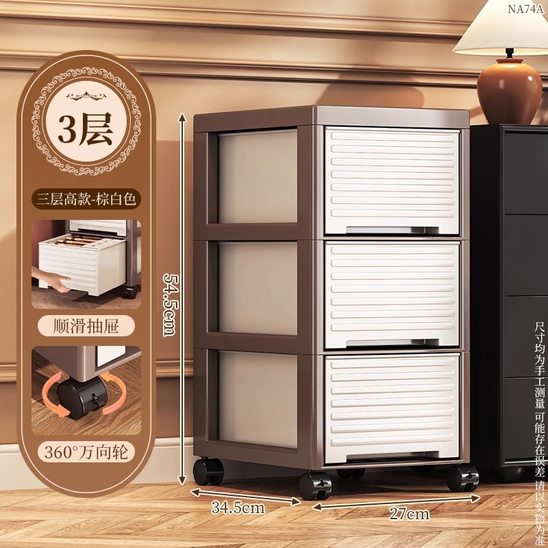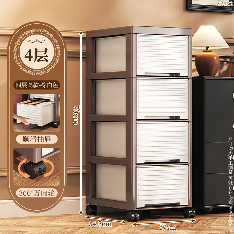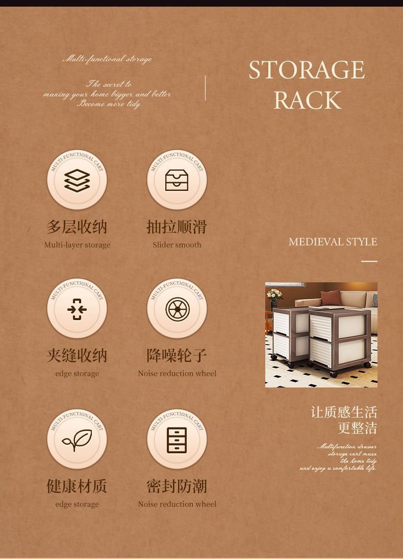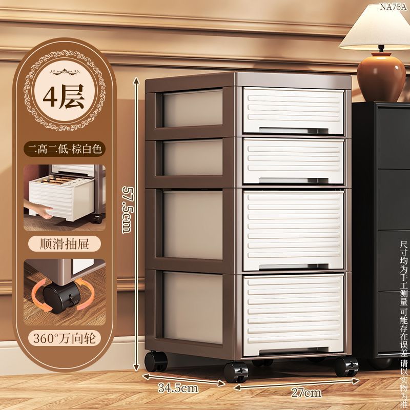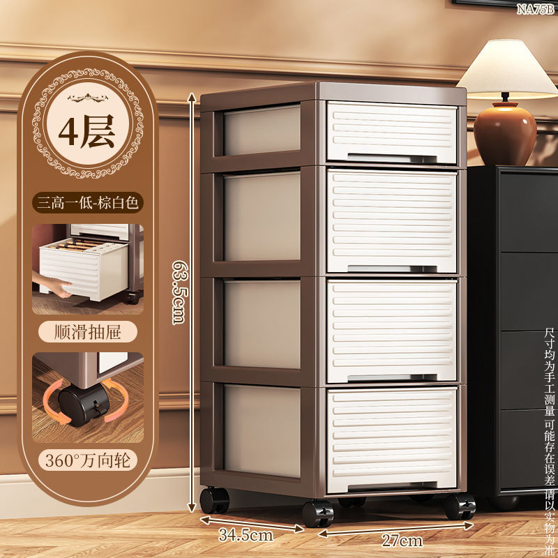 • NA75C-서랍장 트롤리 모델 4층 높이 바퀴 포함-중세 스타일-브라운