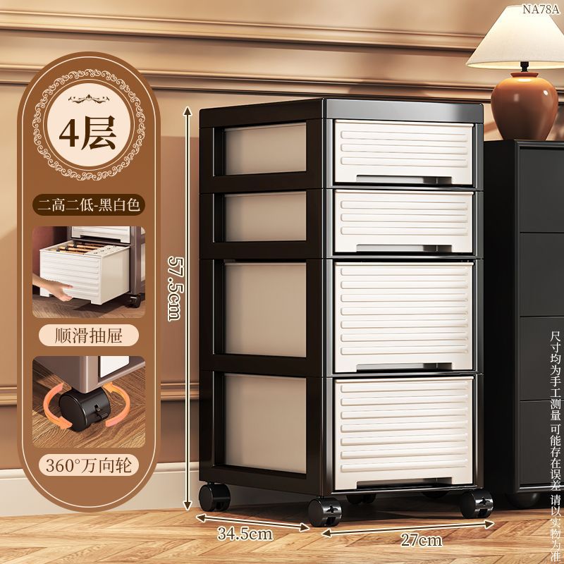 • NA78B-서랍장 트롤리 모델 바퀴가 있는 높이 3개, 낮은 1개-모던 스타일-블랙