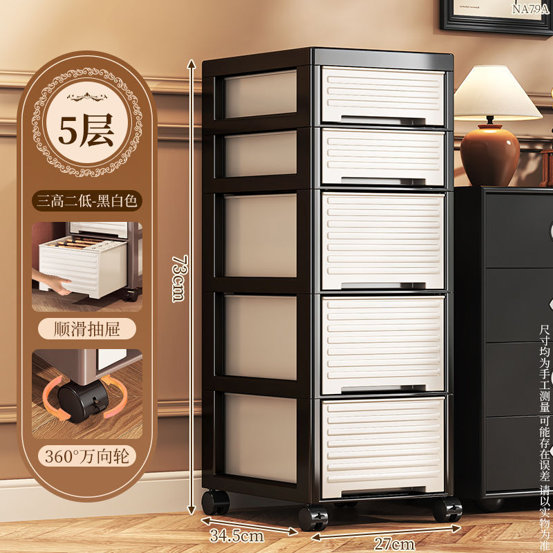 • NA79C-서랍장 트롤리 모델 바퀴가 있는 5층 높이 모델-모던 스타일-블랙