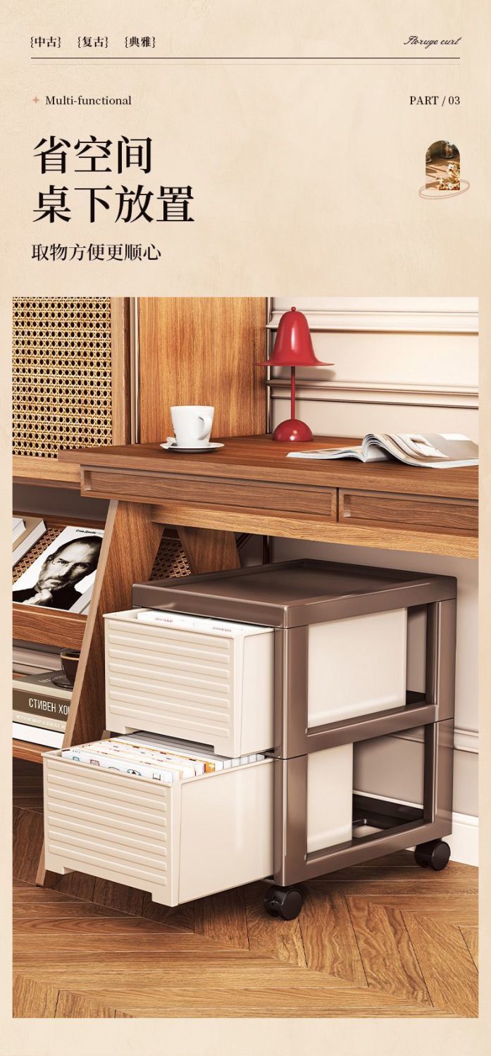 • NA75A-서랍장 트롤리 모델 2개의 높이와 2개의 낮은 바퀴-중세 스타일-브라운