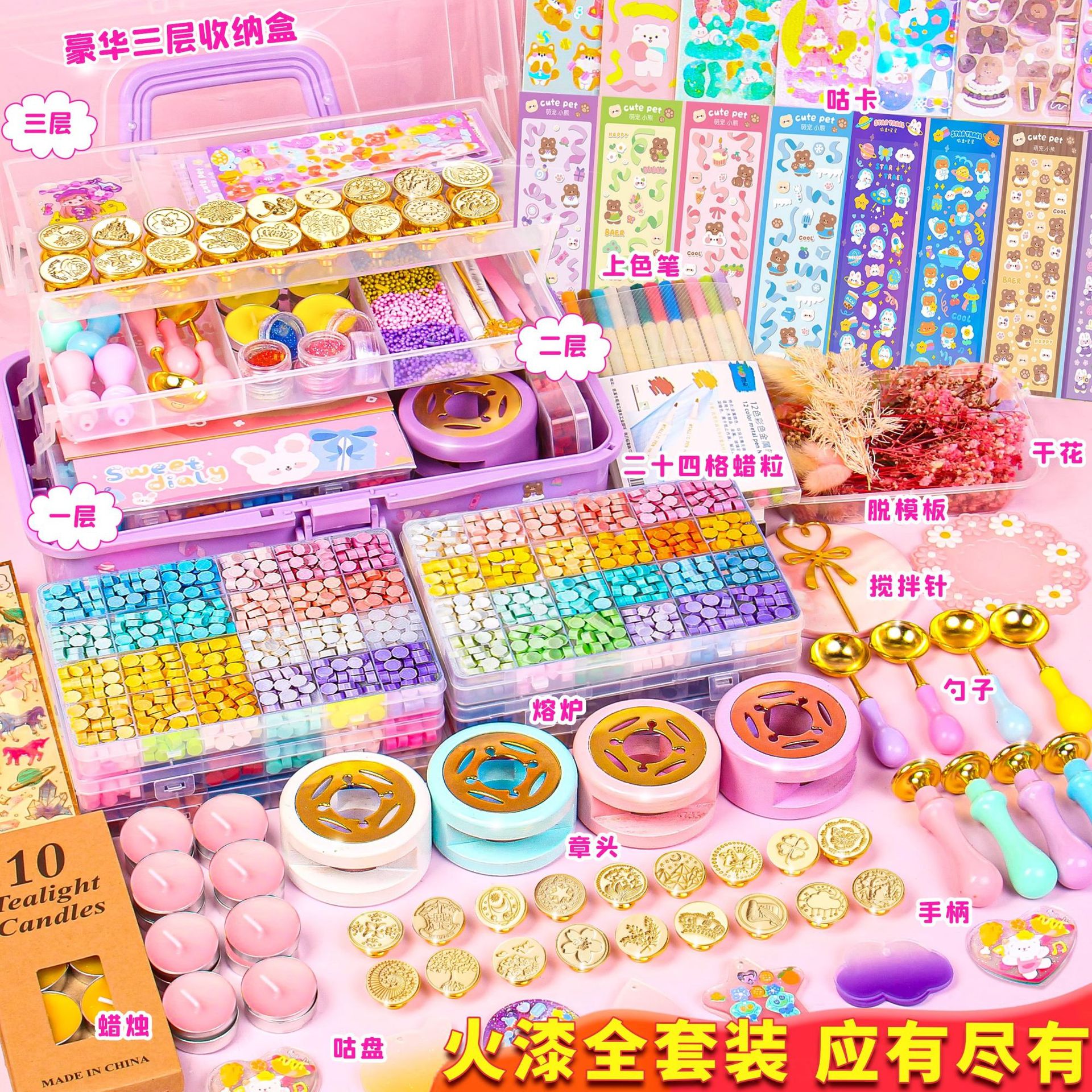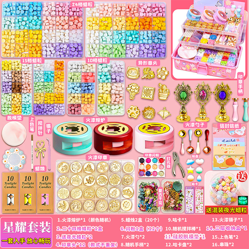 어린이 날 선물 화재 페인트 스탬프 세트 디럭스 버전 Guka 풀 세트 촛불 선물 상자 빛나는 왁스 소녀 어린이 장난감스토어 가기