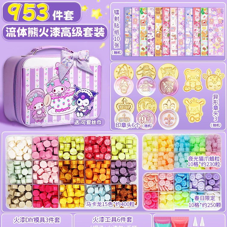• 649피스 크림 글루 파이어 페인트 세트 - 무료 산리오 보라색 여행가방 + 귀여운 실크 스카프