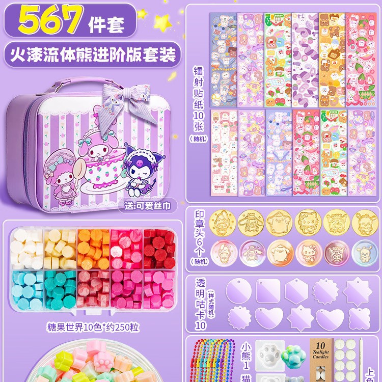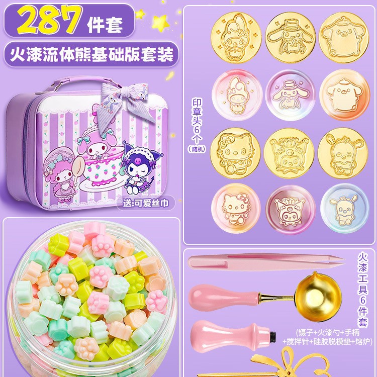• 287피스 파이어 페인트 플루이드 베어 패키지 - 무료 산리오 보라색 여행가방 + 귀여운 실크 스카프