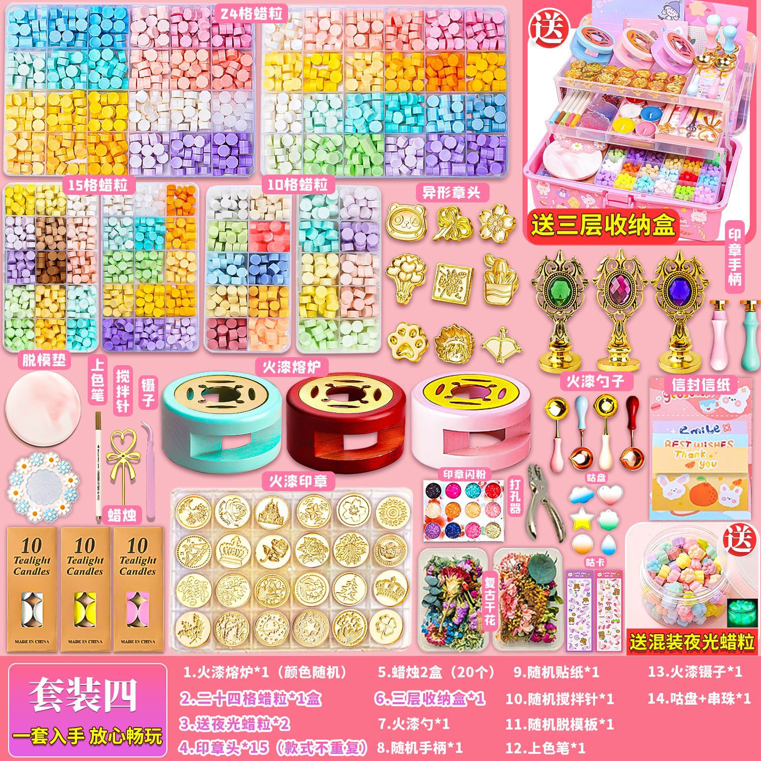 • 4개 세트 [무료 야광 왁스 입자 + 3단 수납 상자]