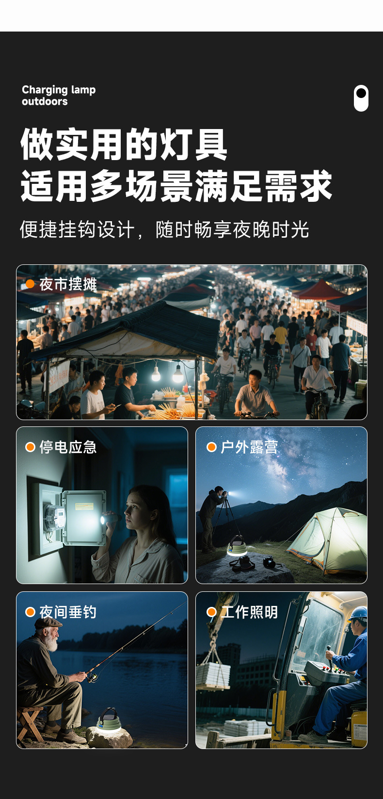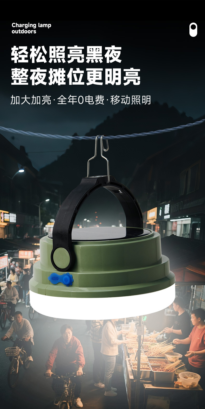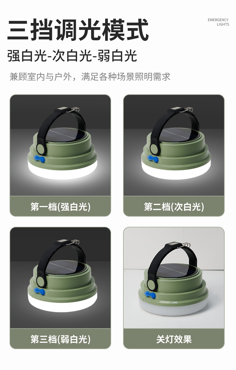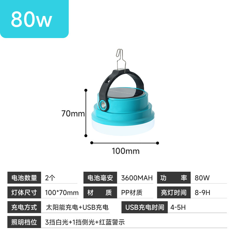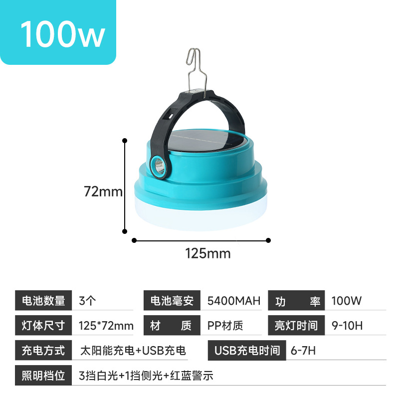 조명등 LED 초장수명 태양광 야외 캠핑 및 야시장 비상용 휴대등 강한 빛