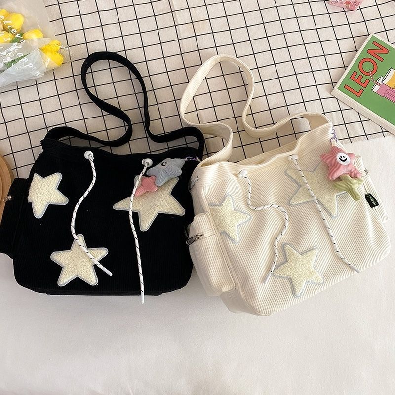 니치 디자인 스타 여학생 대용량 통근 토트 백 코듀로이 숄더 크로스 바디 백 새로운 스타일스토어 가기