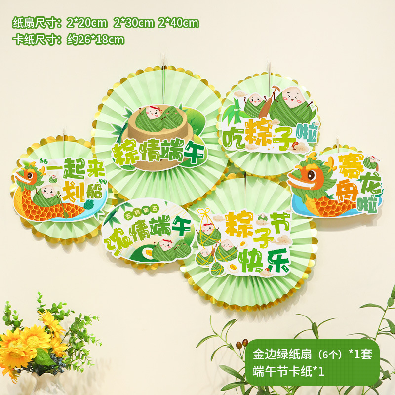 단오절 장식 깃발 종이 부채 꽃줄 드래곤 보트 이벤트 사진 소품 쇼핑몰 매장 분위기 장면 레이아웃