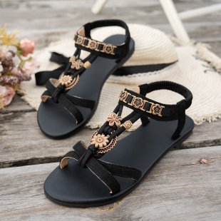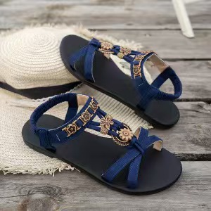 여성 패션 다목적 크로스 보더 대형 2025 여름 새로운 라운드 발가락 플랫 통기성 캐주얼 여성 샌들스토어 가기