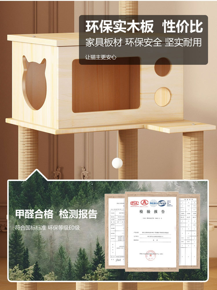 • M6 단단한 나무 판자 이중 고양이 둥지 다중 고양이 선택 단단한 나무 등반 기둥